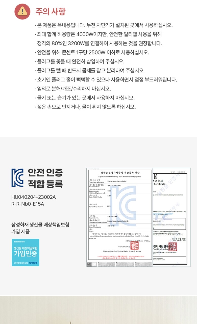 3. 전기용품 안전인증 필 유/무 | 유 |