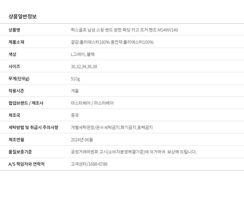 | 6. 세탁방법 및 취급시 주의사항 | 상세이미지 참조 |