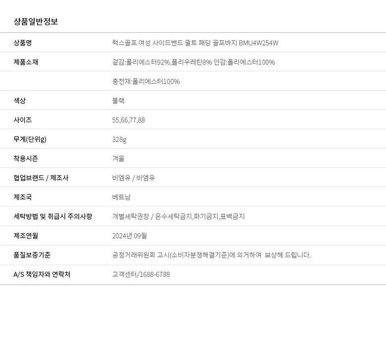 | 6. 세탁방법 및 취급시 주의사항 | 상세이미지 참조 |