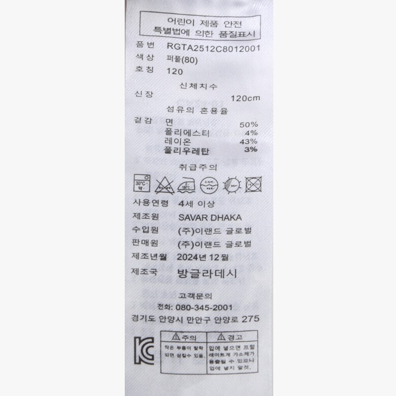 | 1. 제품 소재 (섬유의 조성 또는 혼용률을 백분율로 표시, 기능성인 경우 성적서 또는 허가서) | 상품상세참조 |