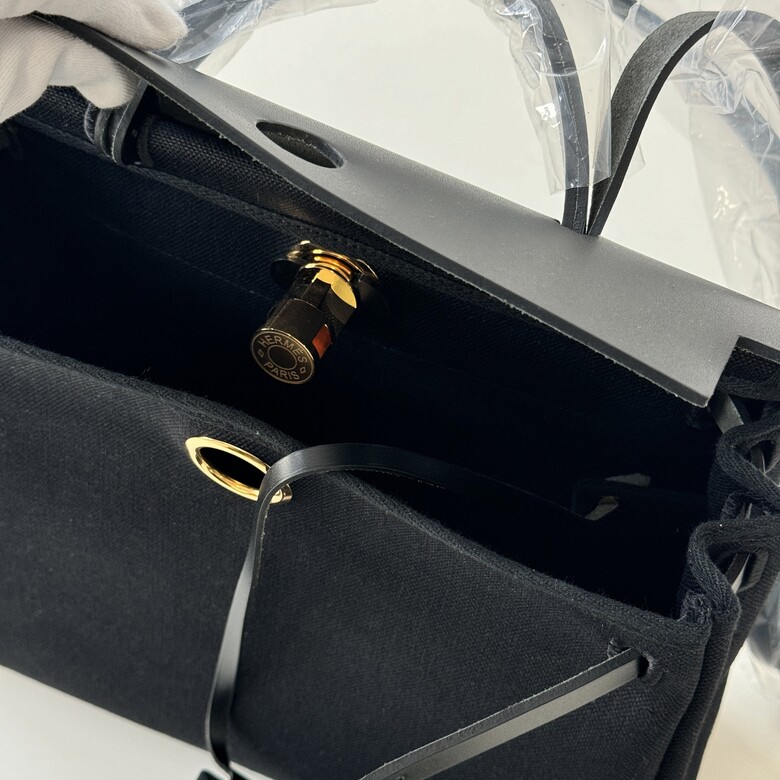 [명품] 에르메스 에르백 31 블랙 캔버스 금장 W각인 H078971CCAA