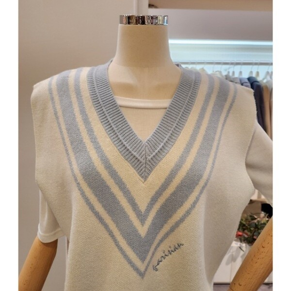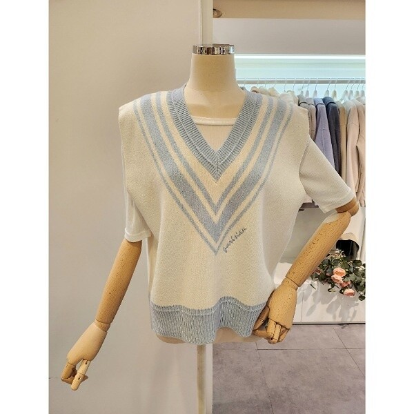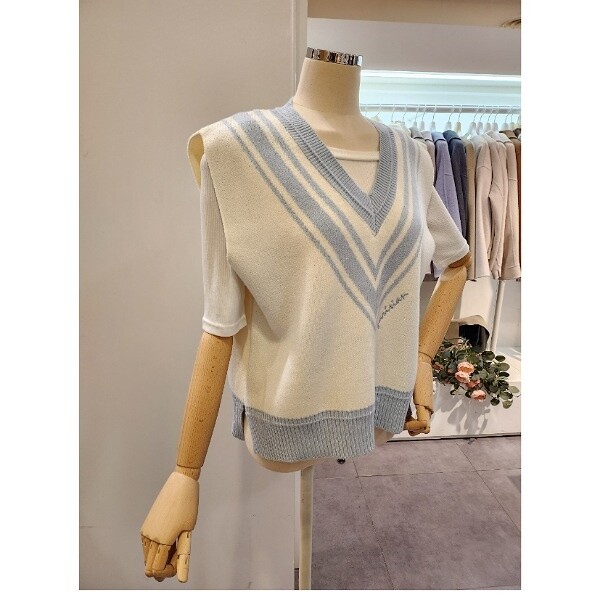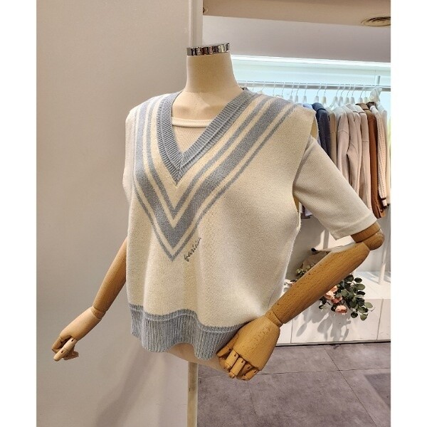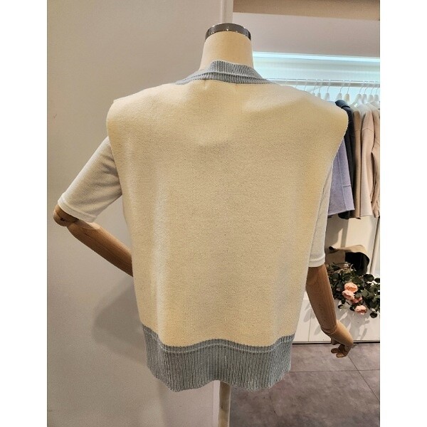 CP1WKV02_배색 브이넥 루즈핏 니트조끼