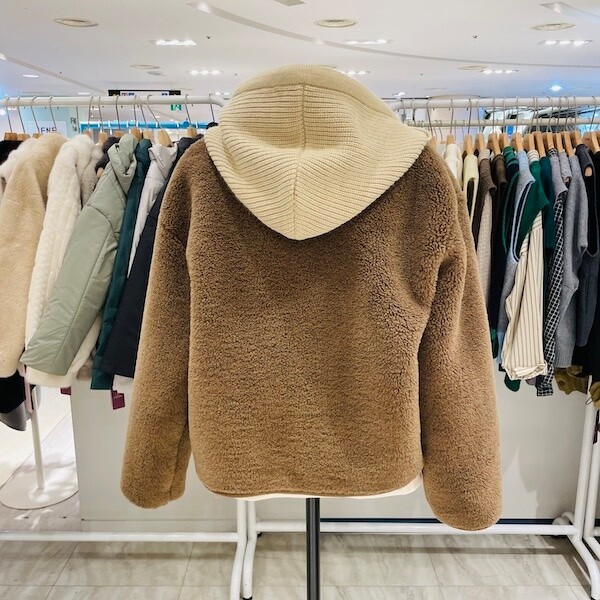 S24JK4431_니트 후드 양털 띠 배색 점퍼