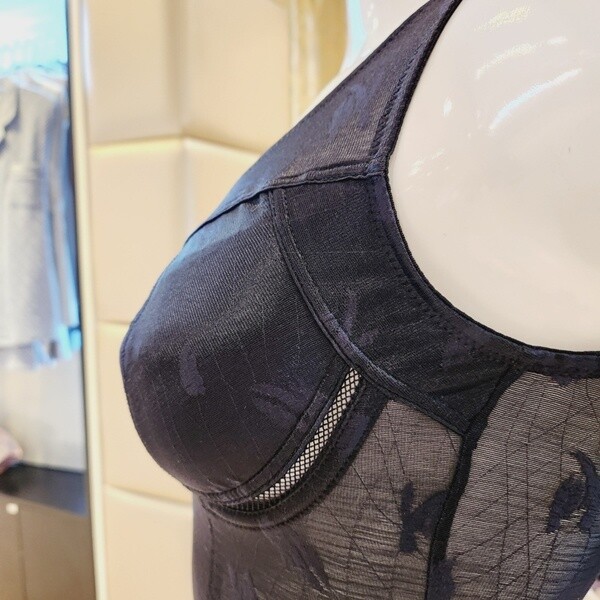 컵원단의 봉제라인이 도드라지는 현상을 보완하기 위해 컵을 세로라인 절개로 변경하여 설계하였습니다.