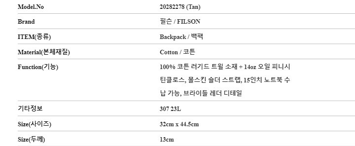| 5. 제조사 | FILSON/MACHO-병행수입 |