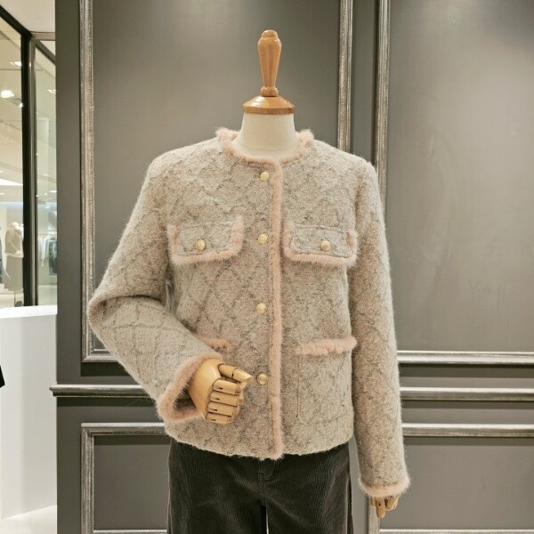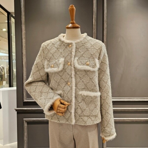 A4CWJK520_체크 울 패딩 트위드 자켓