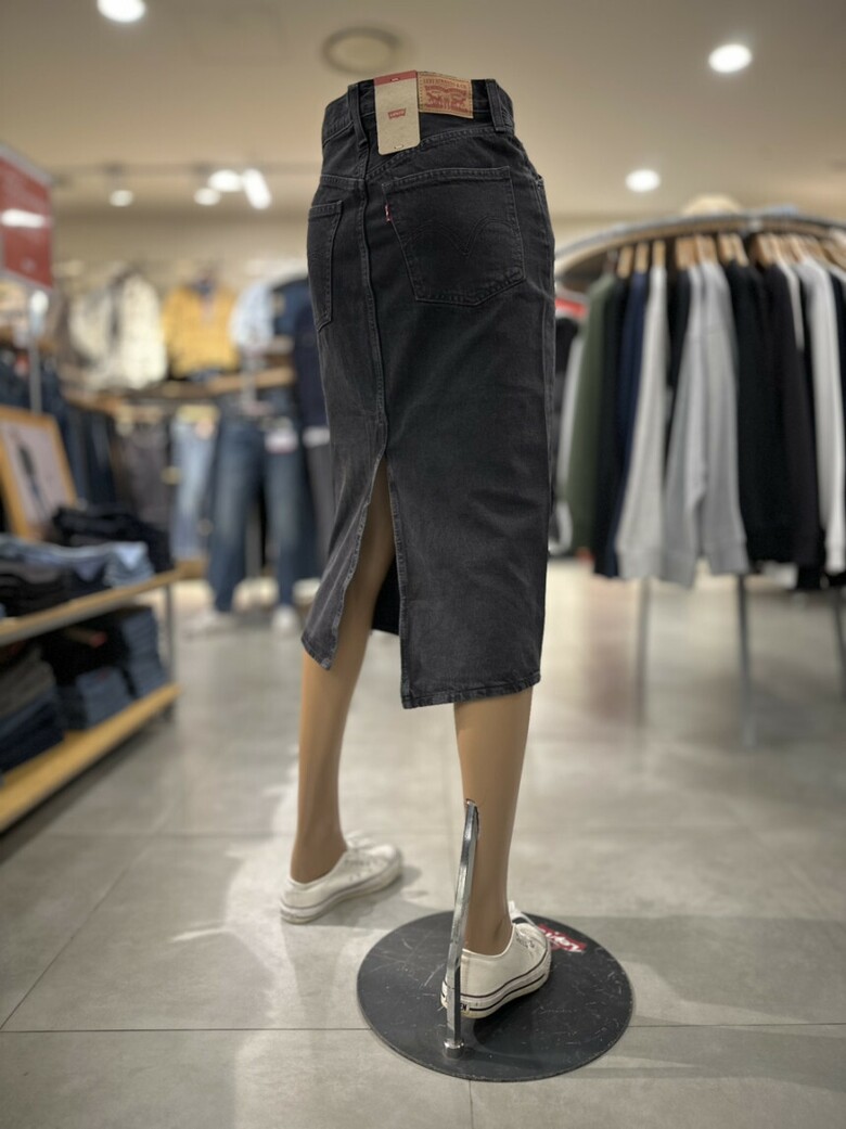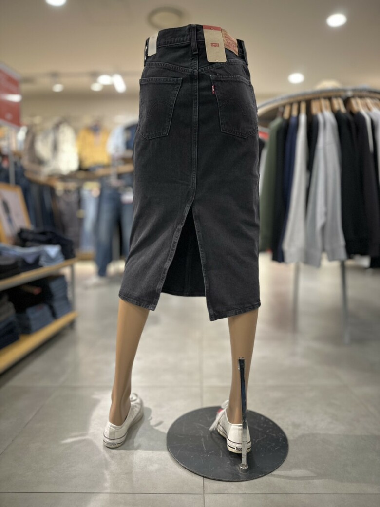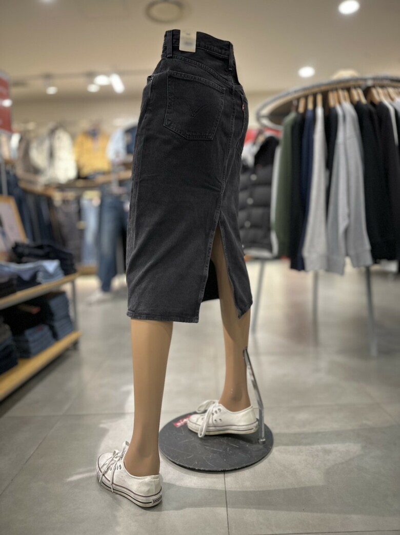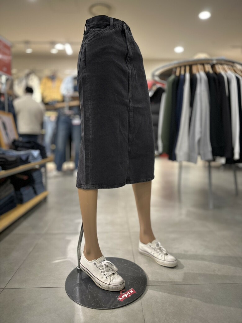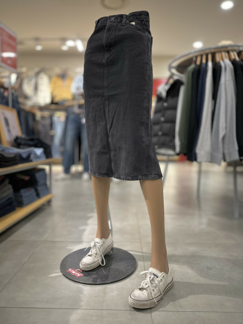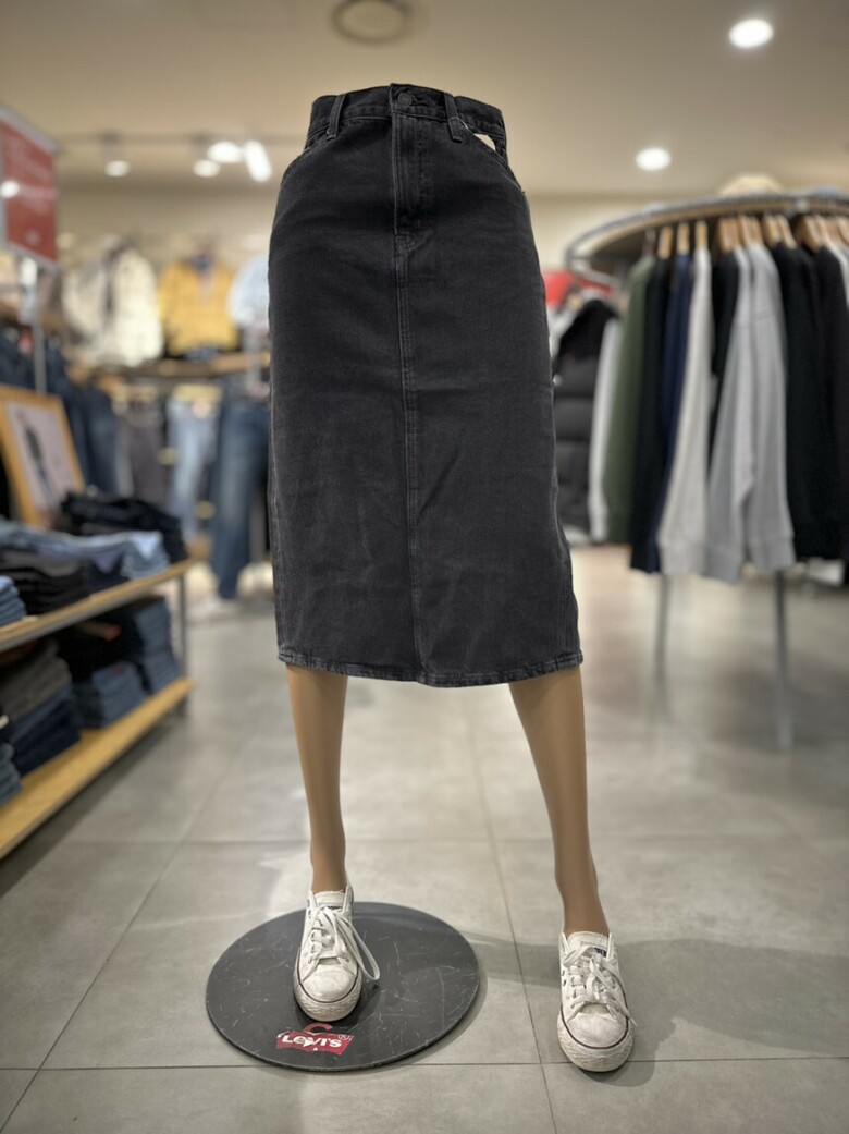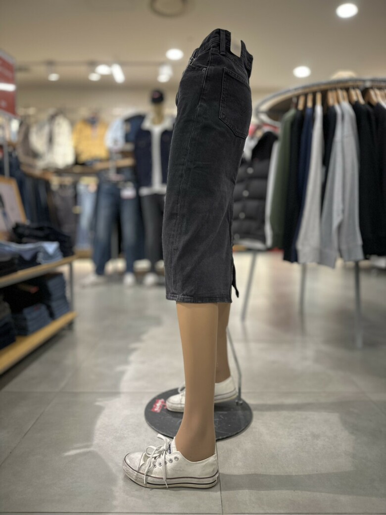 블랙워싱 컬러에 H라인 핏의 여성 데님 스커트입니다.