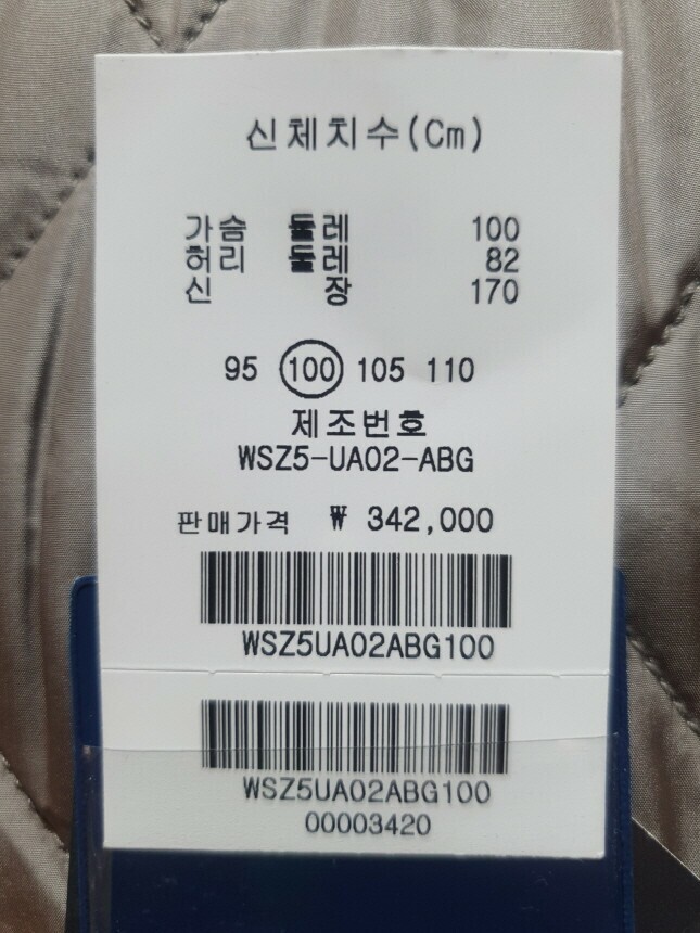 안감 : 폴리에스터 100%