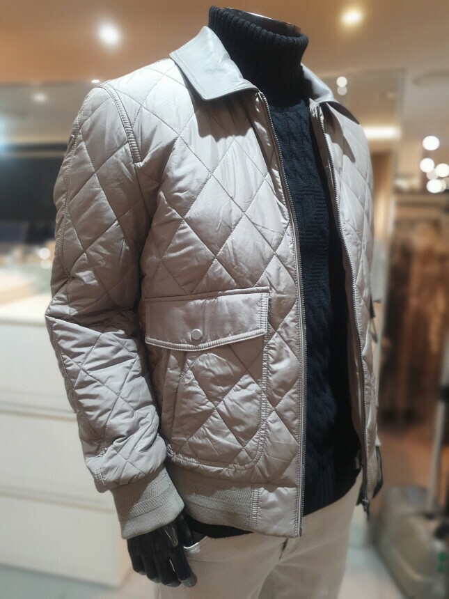 [바쏘옴므] 25년 가죽라펠 퀼팅 헌팅재킷 스타일 점퍼