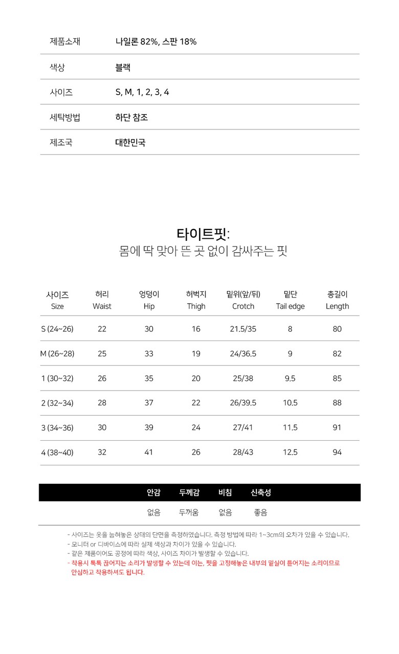 1. 제품 소재 (섬유의 조성 또는 혼용률을 백분율로 표시, 기능성인 경우 성적서 또는 허가서) 나일론82%,스판18%