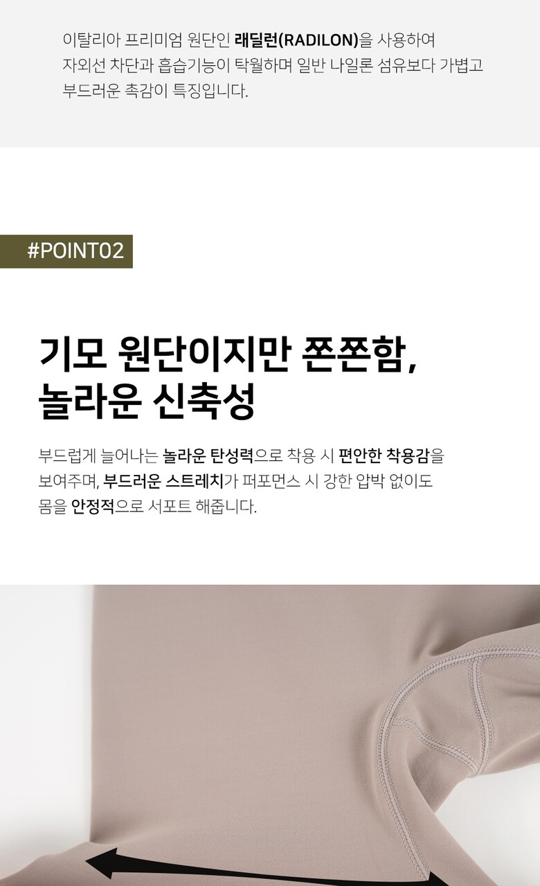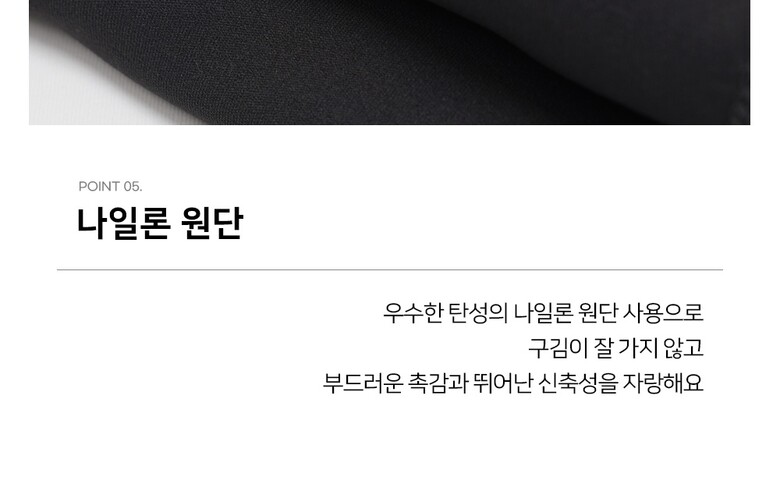 1. 제품 소재 (섬유의 조성 또는 혼용률을 백분율로 표시, 기능성인 경우 성적서 또는 허가서) | 나일론82%,스판18% |