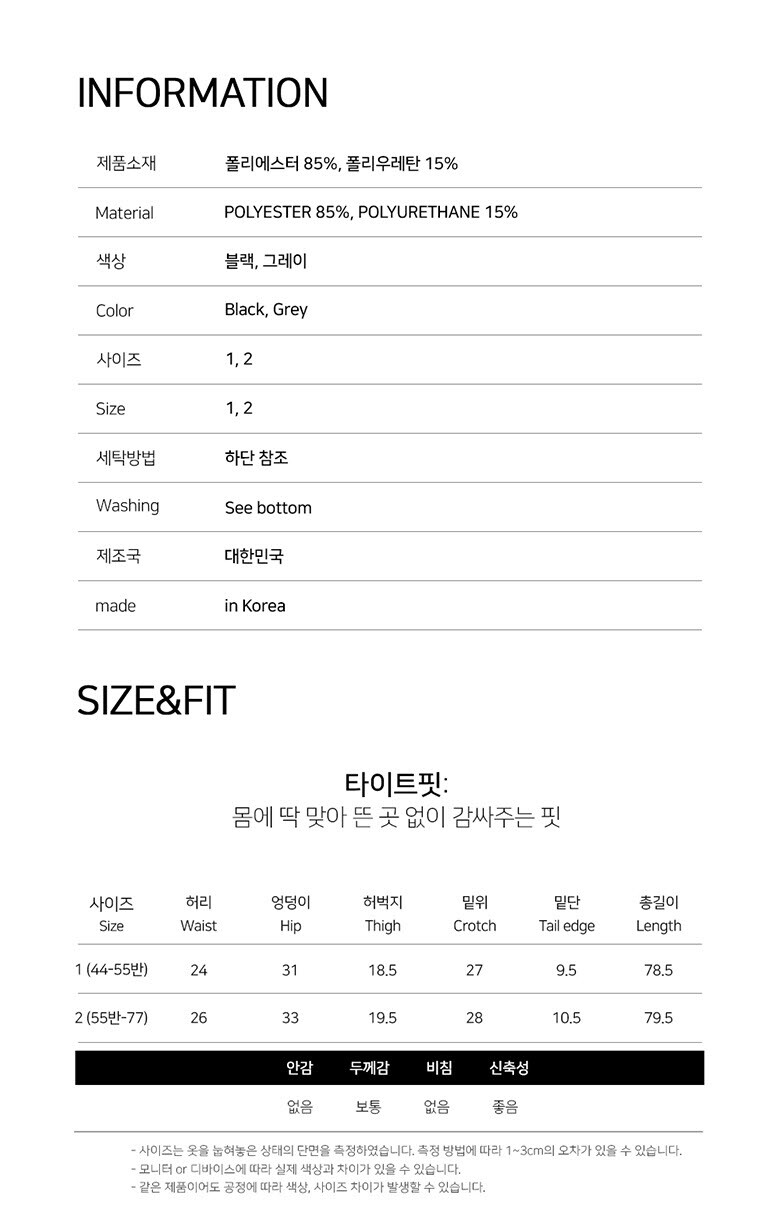 | 1. 제품 소재 (섬유의 조성 또는 혼용률을 백분율로 표시, 기능성인 경우 성적서 또는 허가서) | 상세페이지 참고 |