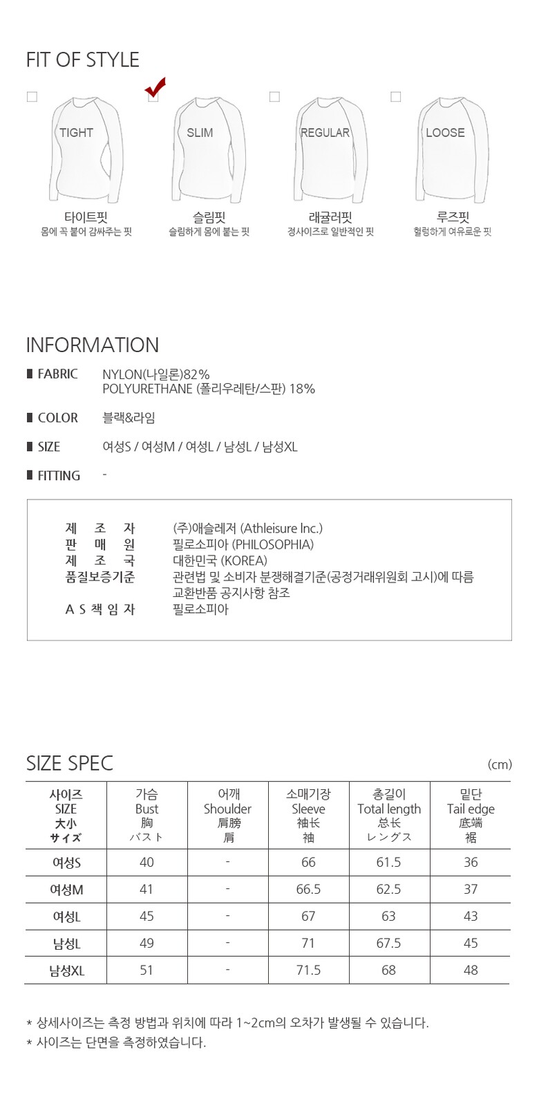 | 1. 제품 소재 (섬유의 조성 또는 혼용률을 백분율로 표시, 기능성인 경우 성적서 또는 허가서) | 나일론 82%, 폴리우레탄 18% |