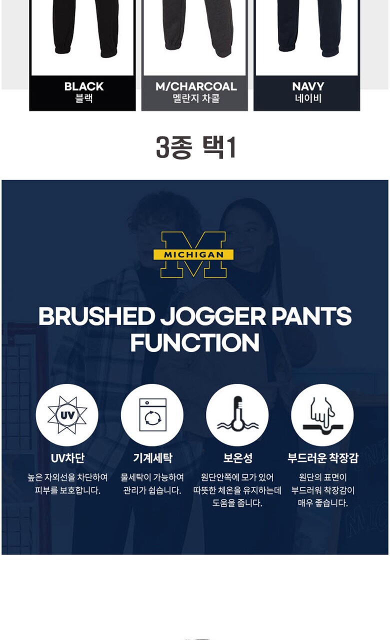 [미시간] 남성 기모본딩 조거팬츠 3종택1