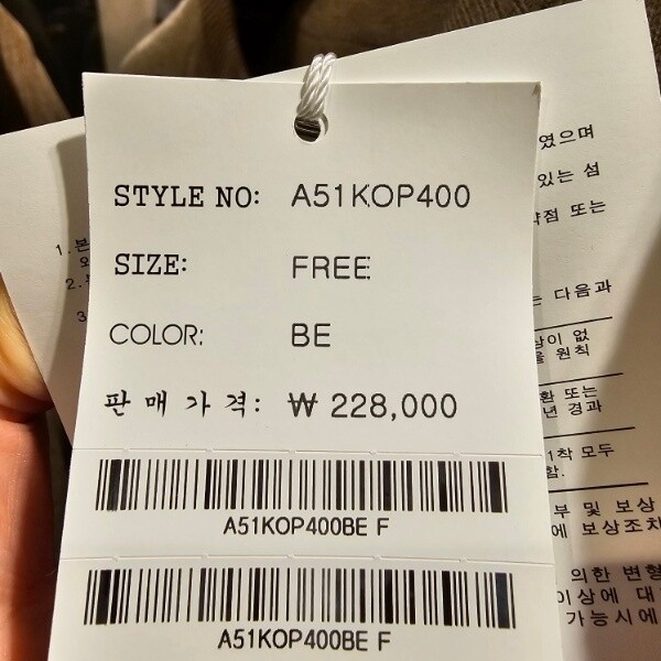 제품소재 : 겉감- 비스코스 52%, 폴리에스터 26%, 나일론 22% / 배색- 폴리에스터 100%