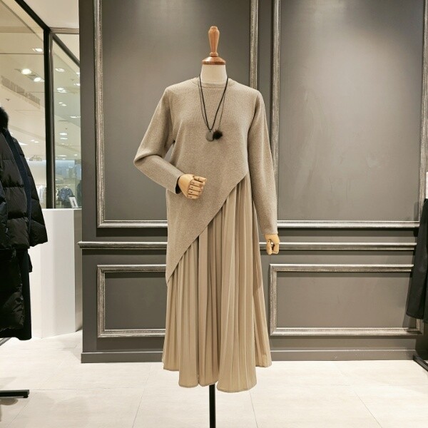 F/ W 신상품?니트 배색 주름 원피스 입니다
