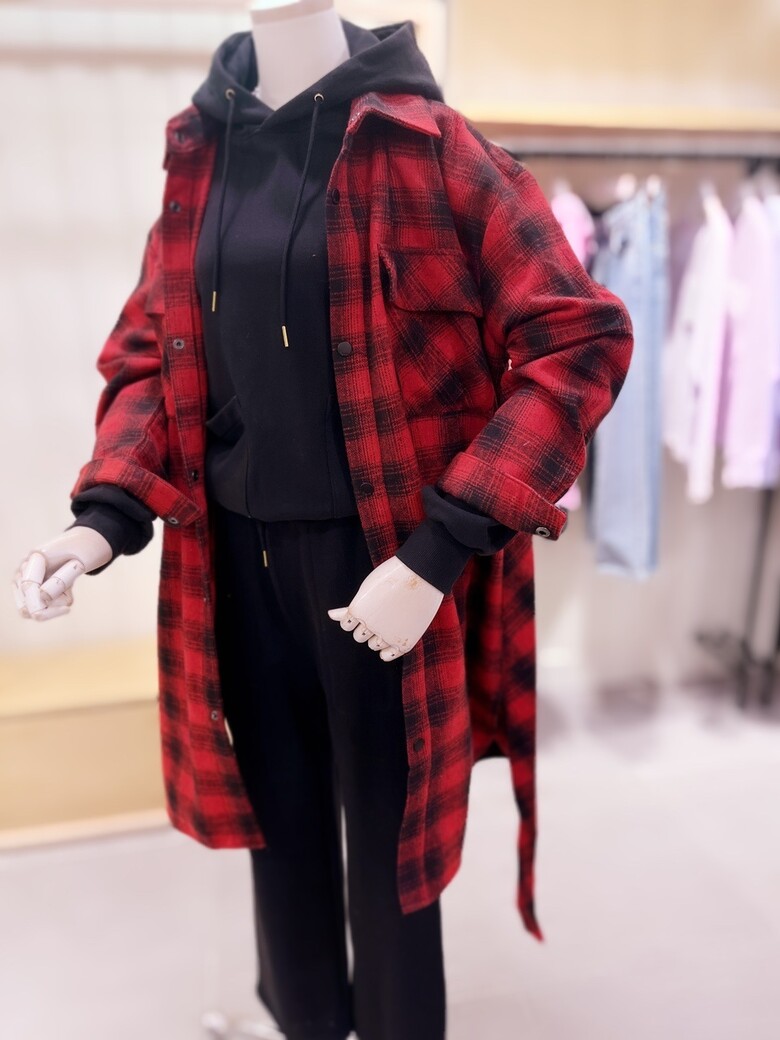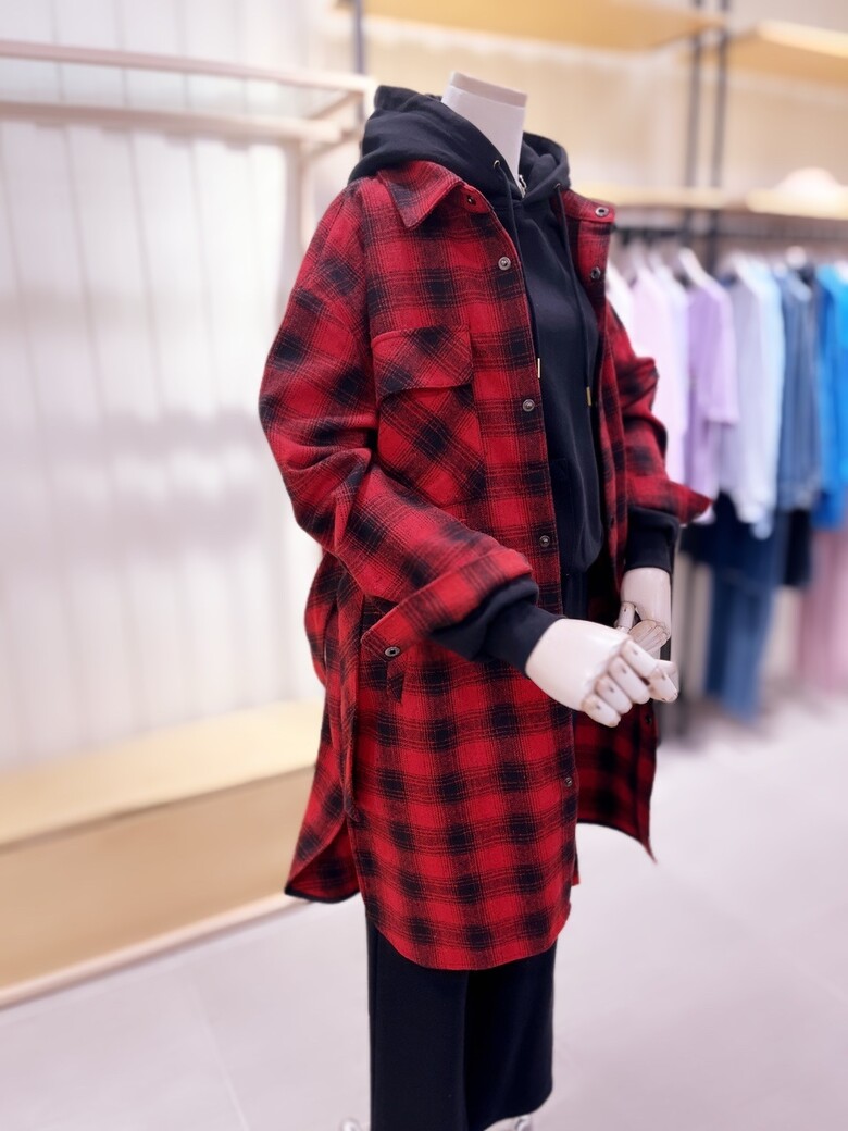 SE4JPF101_체크 루즈핏 롱셔츠형 점퍼