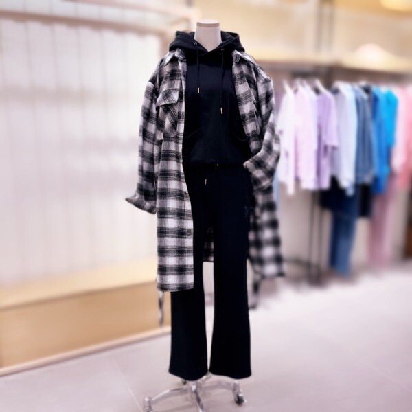 체크 무늬소재와 사이드절개 디테일감으로 포인트를 두어 그냥 툭 걸추어주어도 너무나 스타일리쉬한 요아이"?