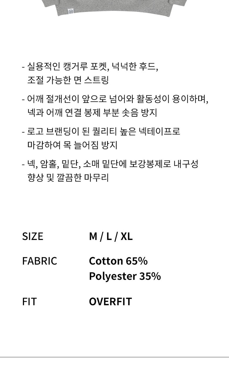 1. 제품 소재 (섬유의 조성 또는 혼용률을 백분율로 표시, 기능성인 경우 성적서 또는 허가서) Cotton 65%, Polyester 35%
