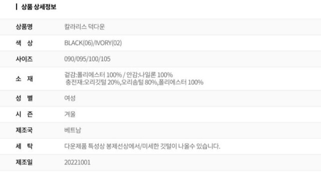 1. 제품 소재 (섬유의 조성 또는 혼용률을 백분율로 표시, 기능성인 경우 성적서 또는 허가서) 상품상세참조