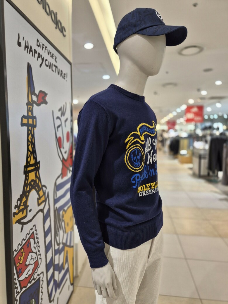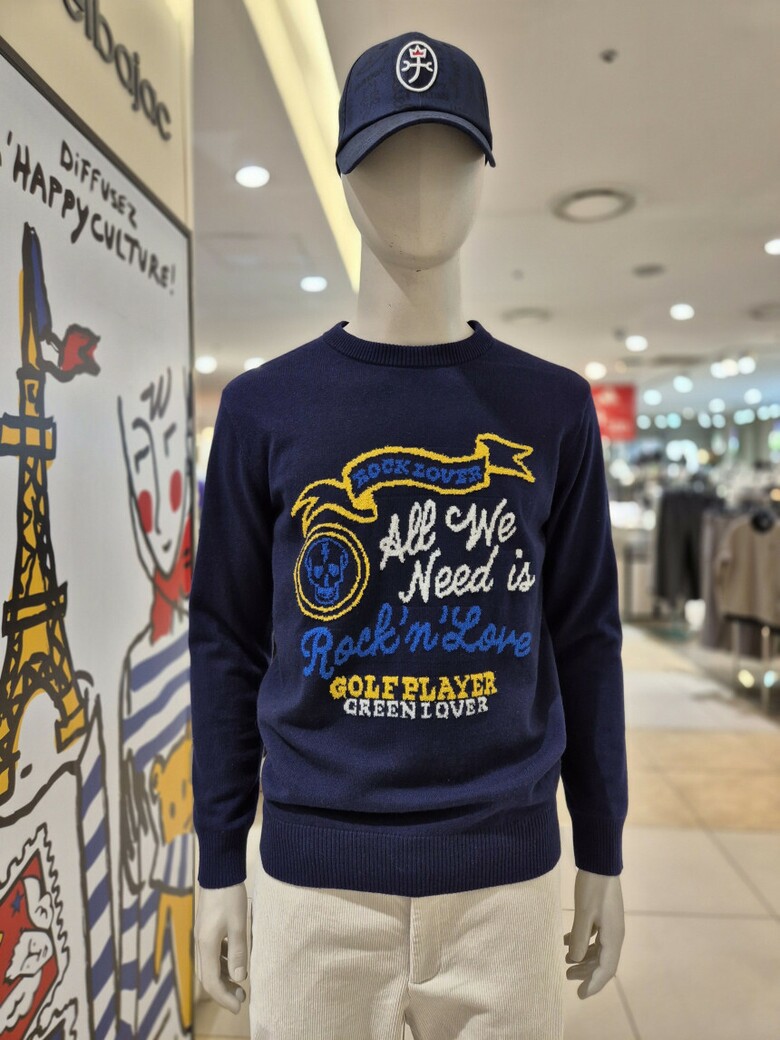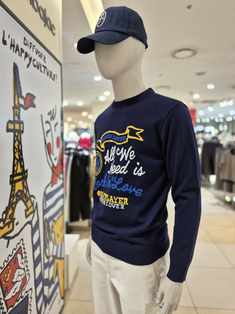 남성 아트웍 포인트 라운드넥 방풍 니트셔츠 BGDWSW202 NY