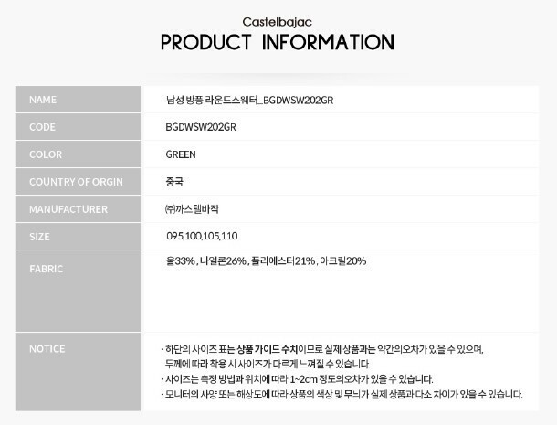 *겉감: 모 33%, 나일론 26%, 폴리에스터 21%, 아크릴 20%