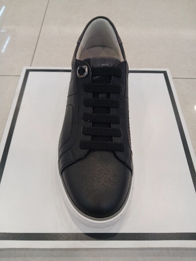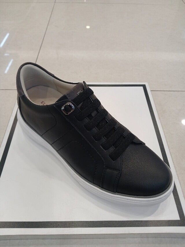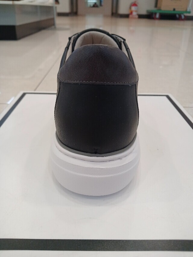 굽높이 약5cm의 높이에 천연소가죽소재를 사용하여 제작된 남성 키높이 스니커즈입니다
