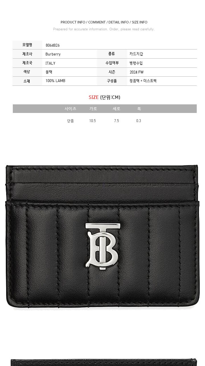 버버리 24FW LOLA 은장 로고 퀄팅 패딩 카드지갑 블랙 8064826