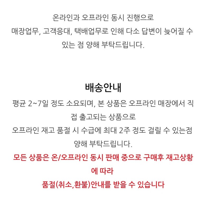 상품불량에 의한 반품, A/S, 품질보증 및 피해보상 등에 관한 사항은 소비자 분쟁해결기준(공정거래위원회 고시) 구매자가 미성년자인 경우에는 상품 구입시 법정대리인이 동의하지 아니하면 미성년자 본인 또는 법정대리인이 구매취소 할 수 있습니다. |