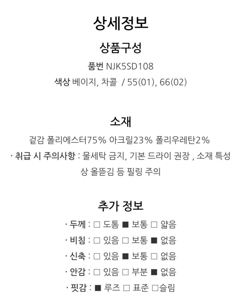 | 6. 세탁방법 및 취급시 주의사항 | 상품상세참조 |
