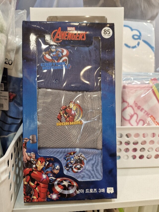 아이들이 좋아하는 어밴져스 캐릭터가 포인트 프린트되어있는 남아 사각 면팬티 3매세트 입니다.