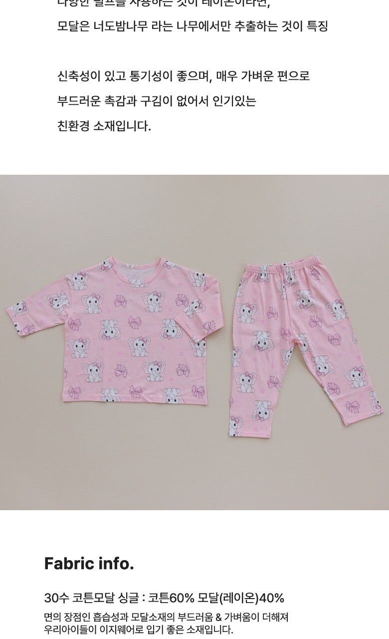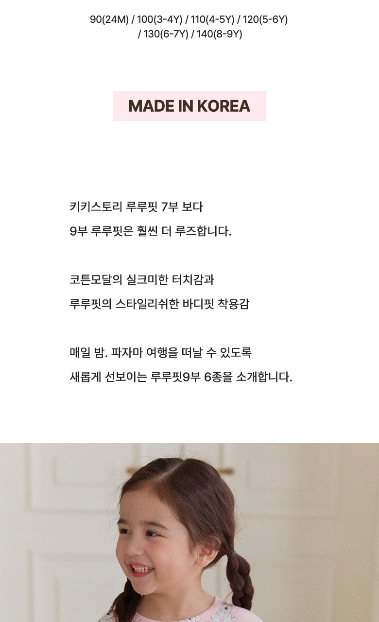 코튼 모달 아기코코 핑크 루루핏 9부 긴팔