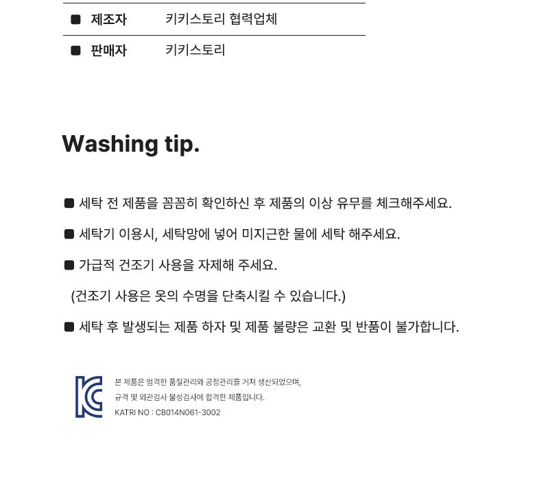 6. 세탁방법 및 취급시 주의사항 | 상세페이지 참조 |