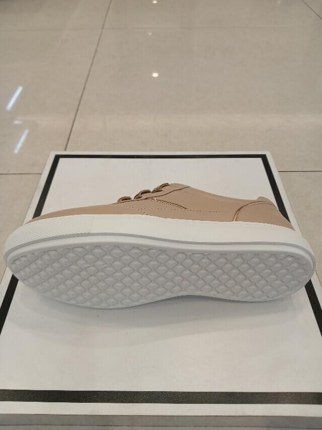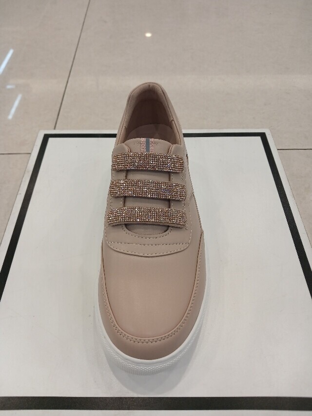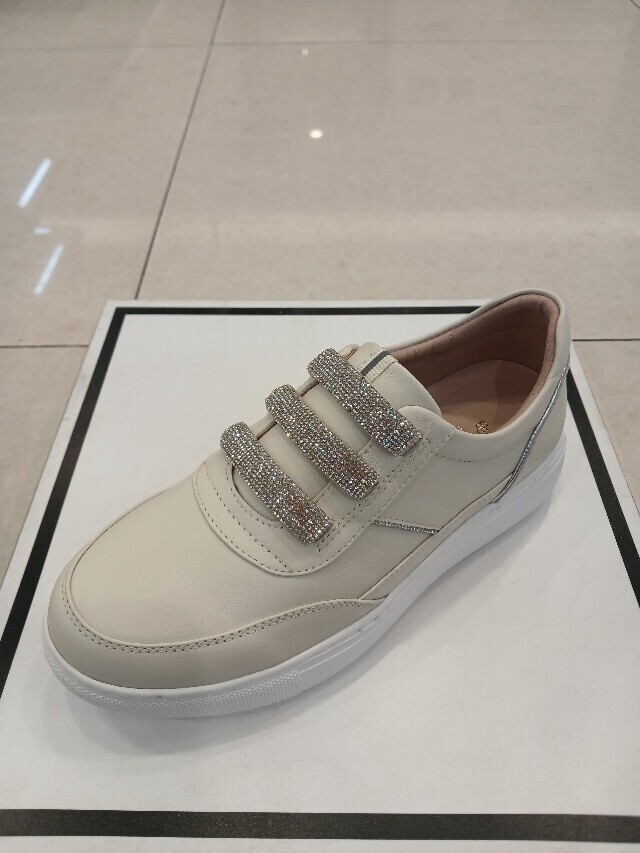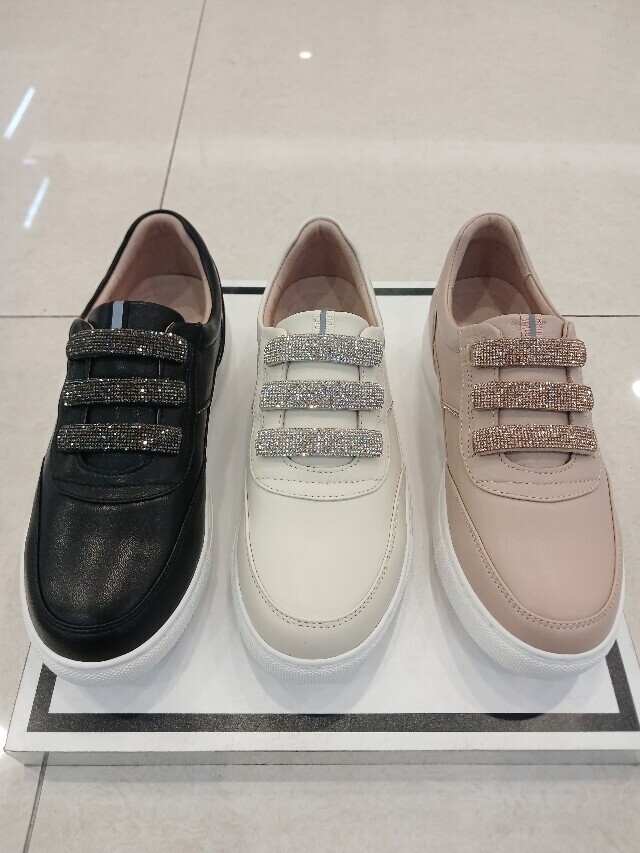 굽높이 약3cm의 높이에 천연양가죽소재를 사용하여 특수공법으로 가공처리하여 제작된 여성 쿠셔닝 슬립온스니커즈입니다