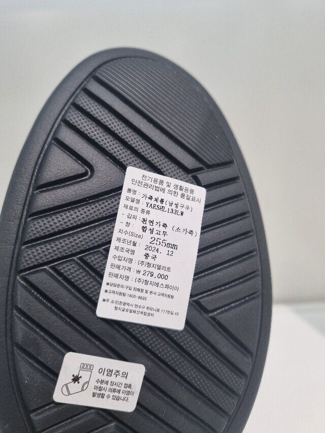 1. 제품 소재 (운동화인 경우에는 겉감, 안감을 구분하여 표시) | 소가죽 |