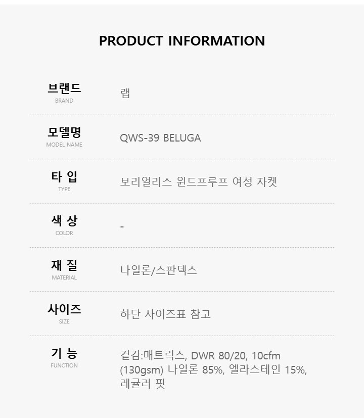 랩 QWS-39 BELUGA 보리얼리스 윈드프루프 여성 자켓