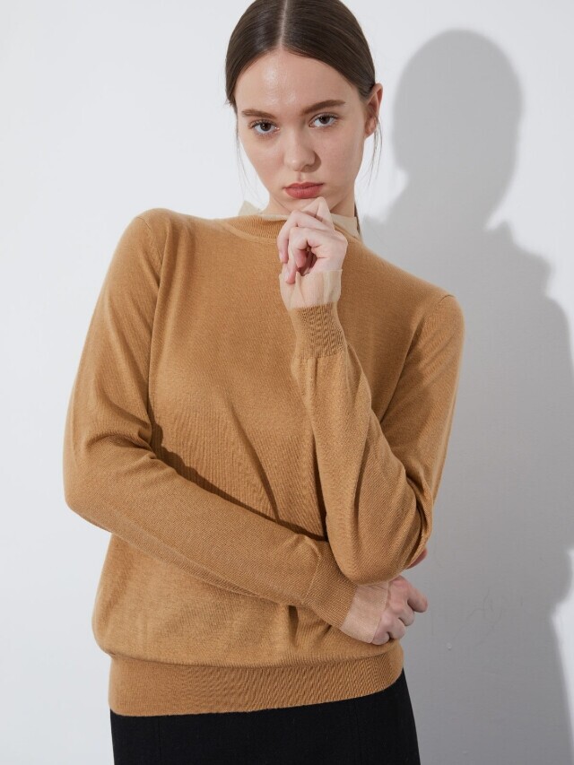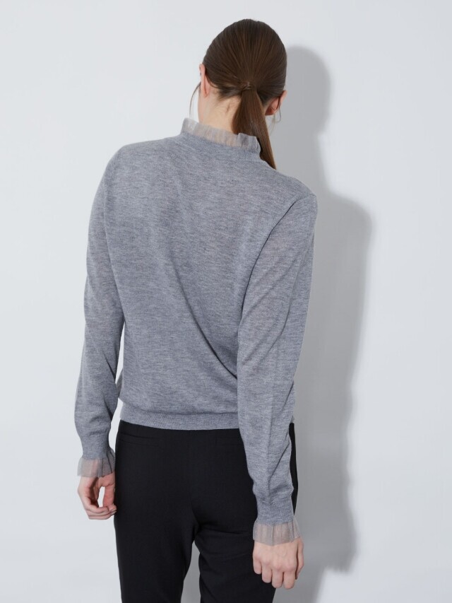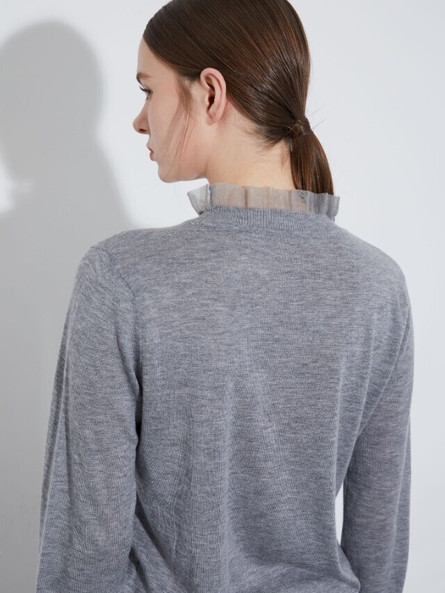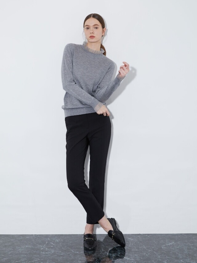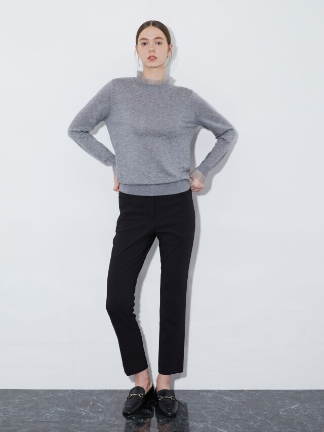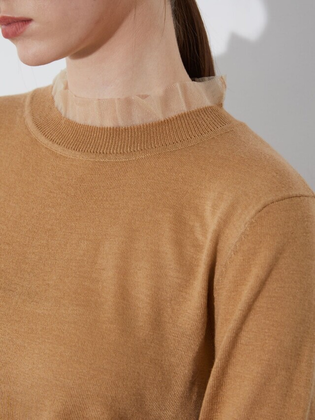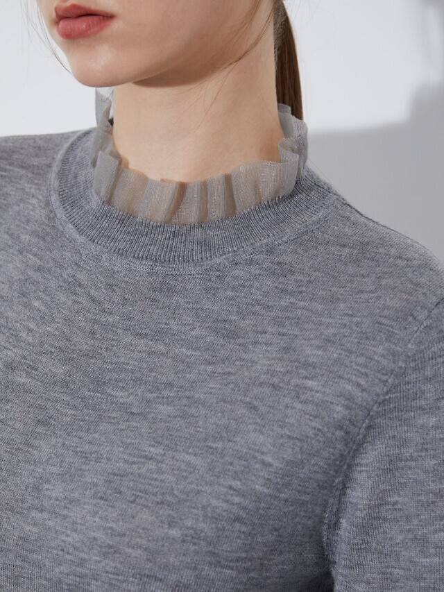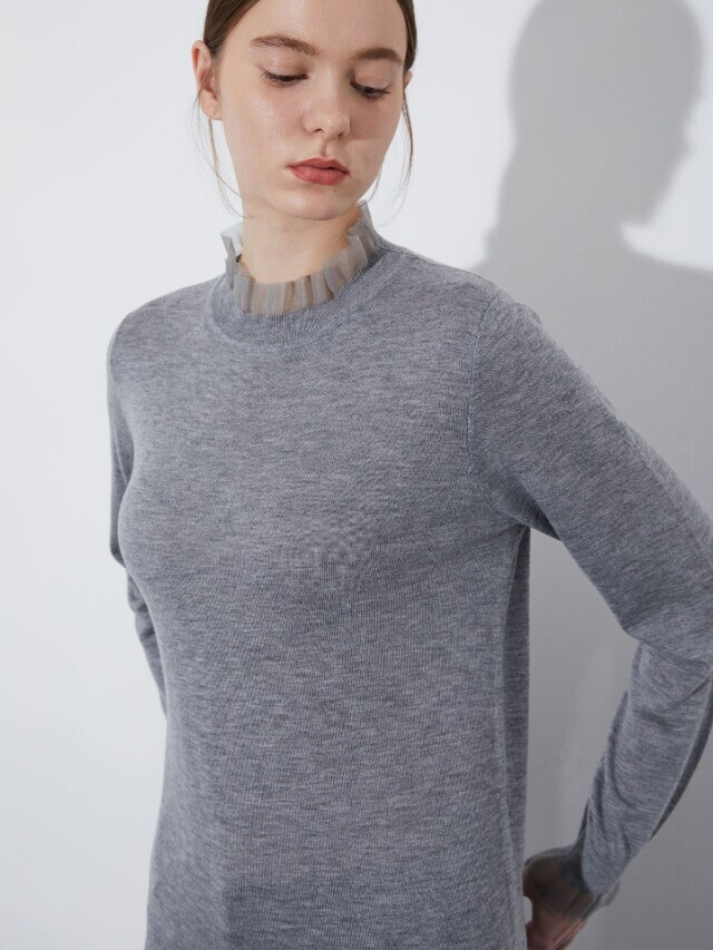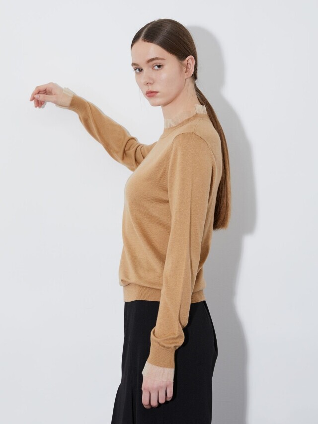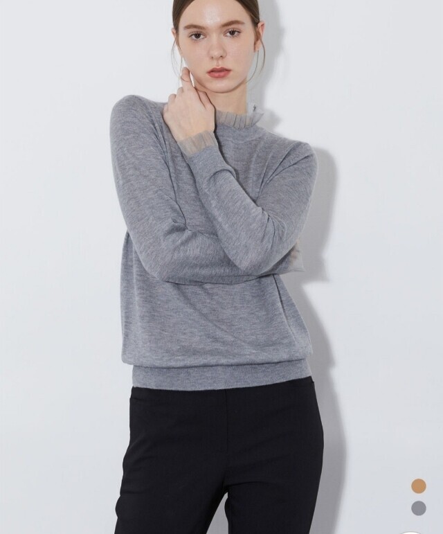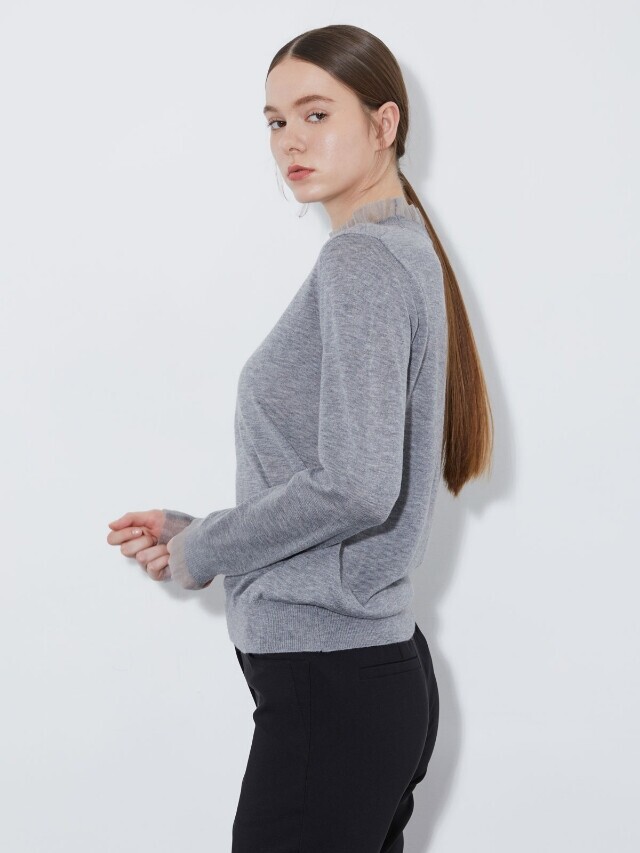 넥과 소매에 반투명 프릴이 달린 페미니한 스타일의