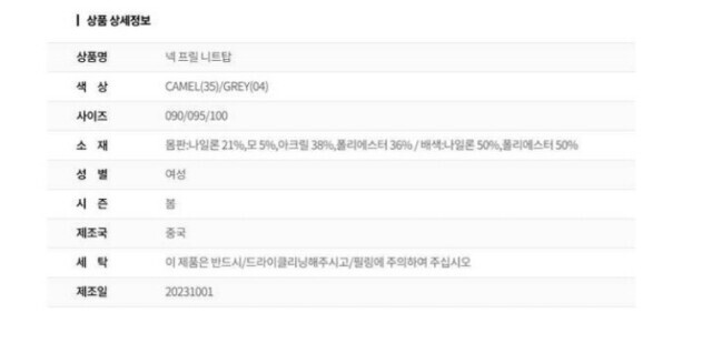 | 1. 제품 소재 (섬유의 조성 또는 혼용률을 백분율로 표시, 기능성인 경우 성적서 또는 허가서) | 상품상세참조 |