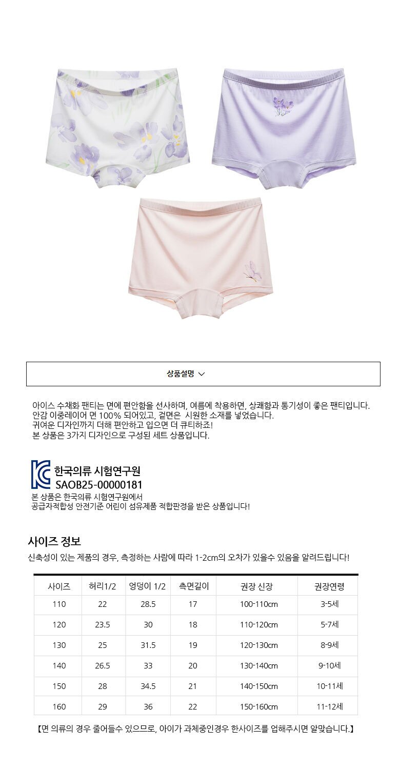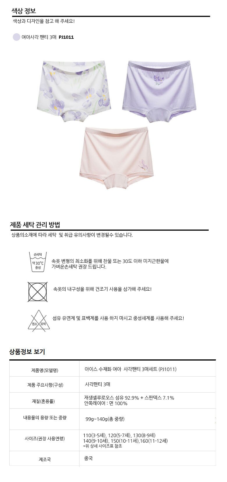 아이스 수채화 여아 사각팬티 3매세트(PJ1011)