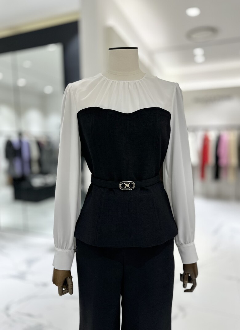 모조에스핀 하트넥 벨티드 블라우스 S251MSC004