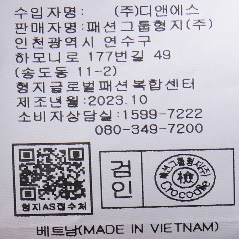 | 1. 제품 소재 (섬유의 조성 또는 혼용률을 백분율로 표시, 기능성인 경우 성적서 또는 허가서) | 상품상세참조 |