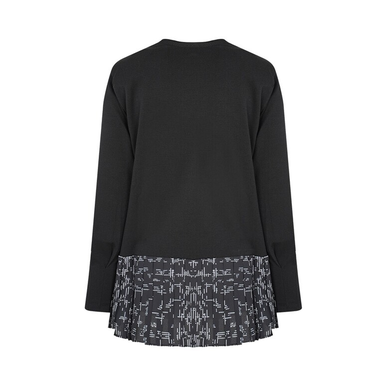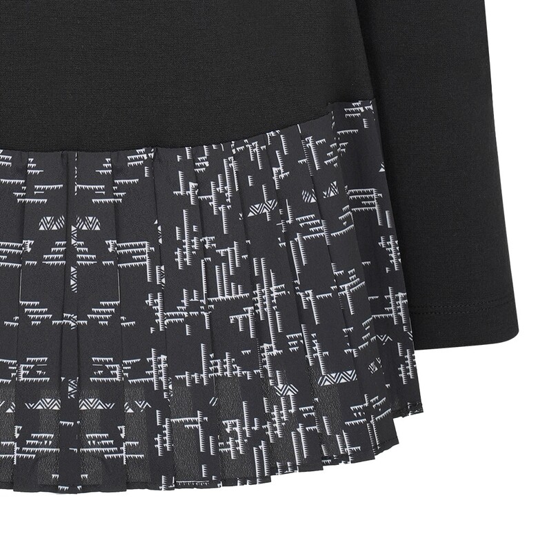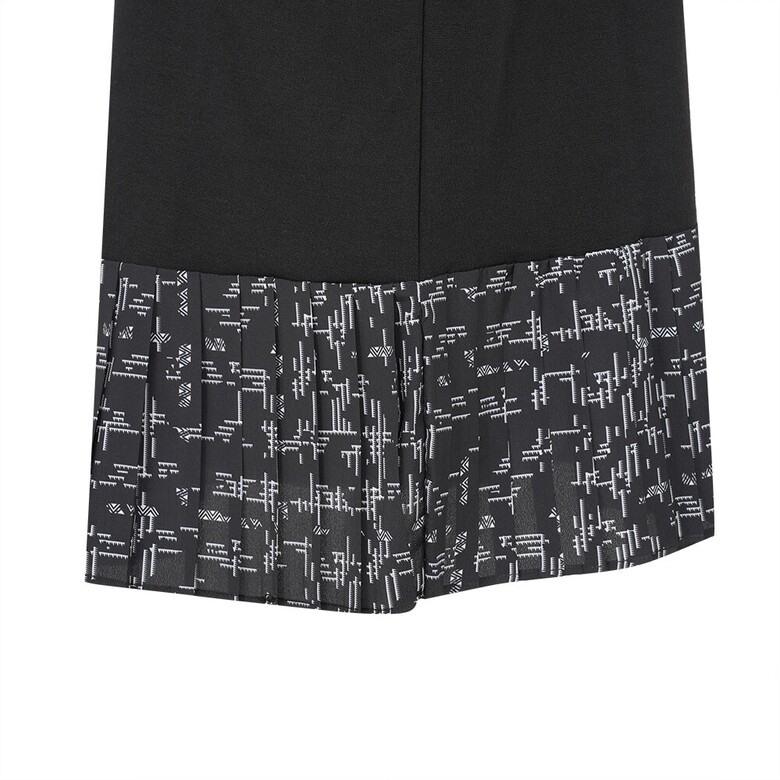 밑단 단도 프린트와 플리츠가 있어 고급스럽게 연출 가능한 아이템입니다.네크라인이 시보리 말림단이 있어 입고 벗는데 용이한 아이템입니다