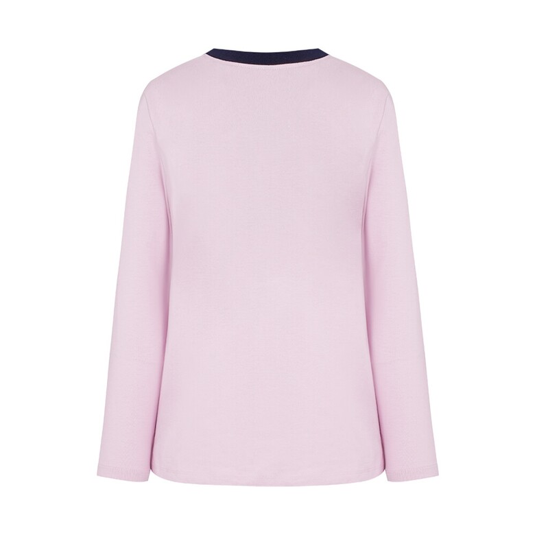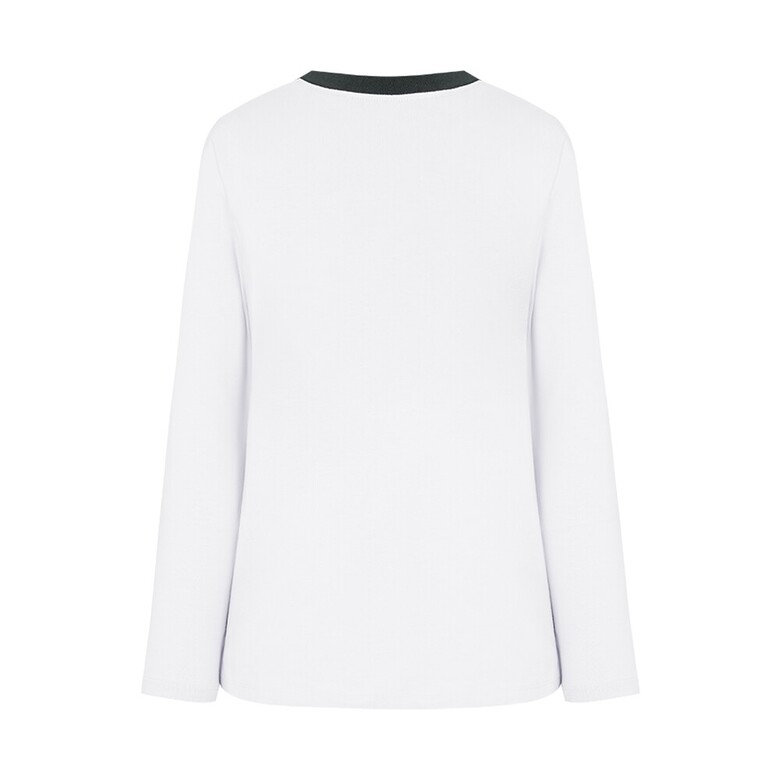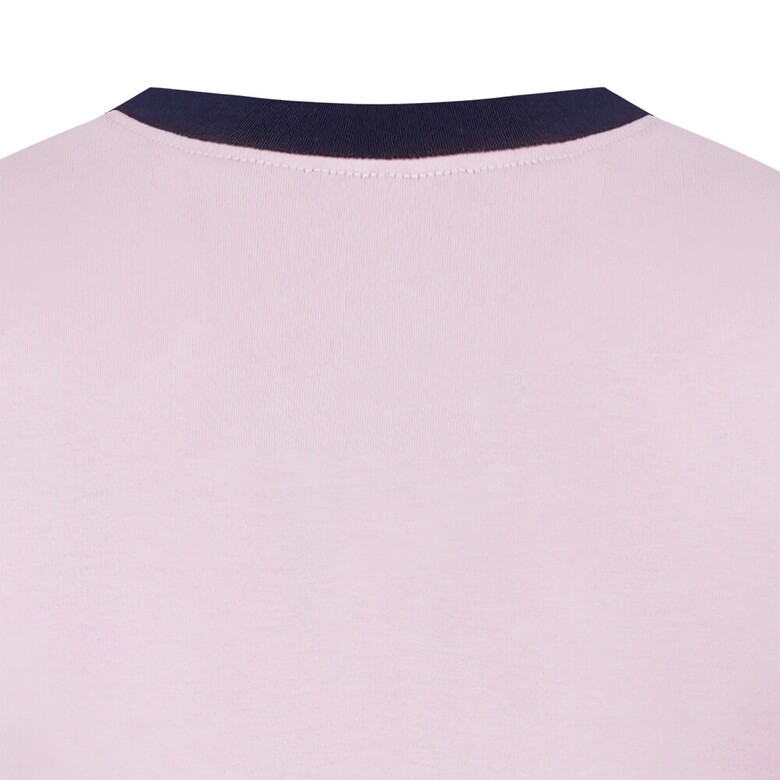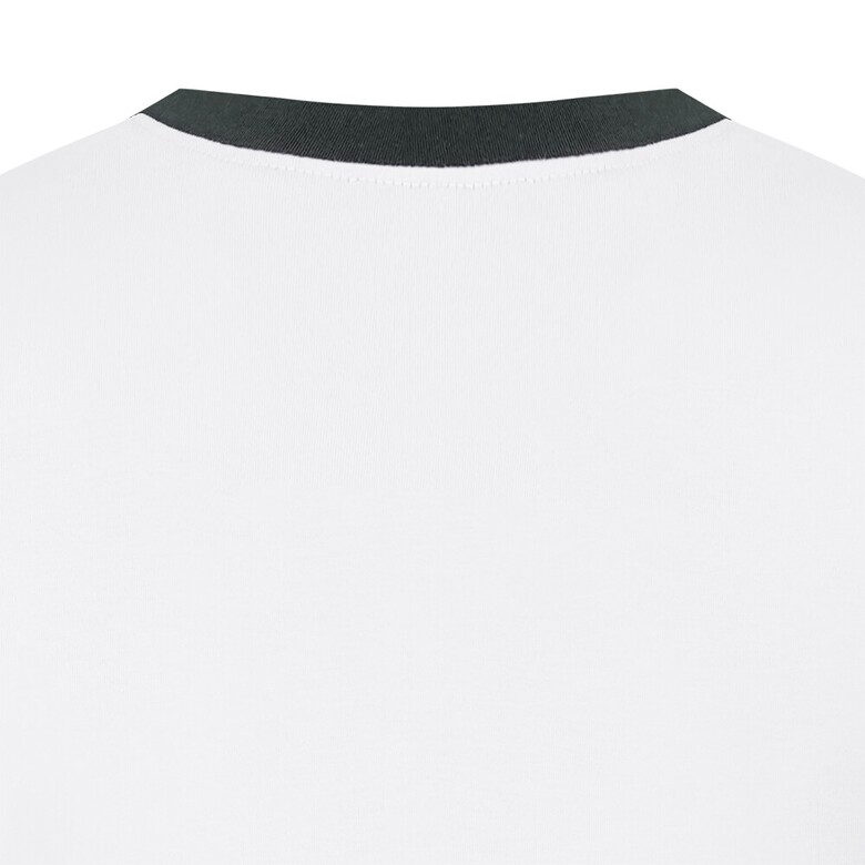 C/P 소재를 사용하였고 앞판 원포인트 아트웍과 에리 컬러 배색이 포인트인 어디에나 코디가 용이한 캐주얼 라운드 티셔츠