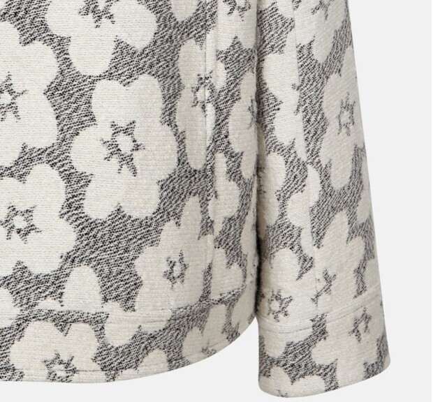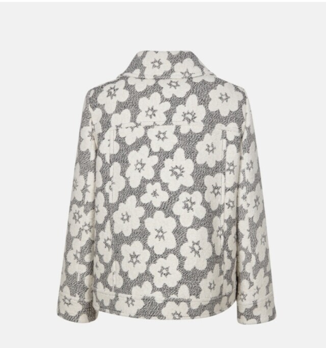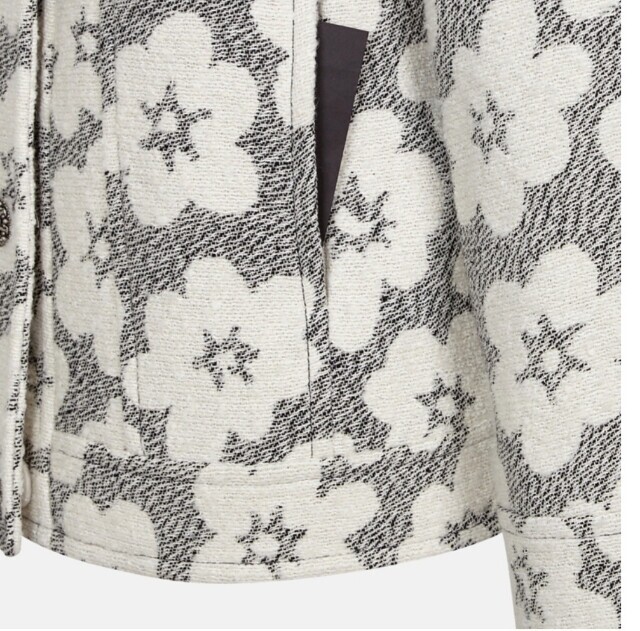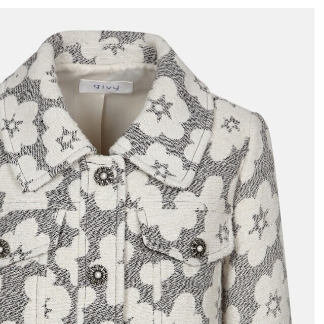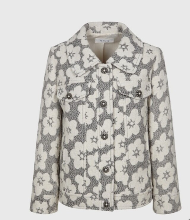 은은한 꽃모양 패턴이 돋보이는 쟈가드소재의 쟈켓입니다. 앤틱한 금속단추가 고급스러워요.