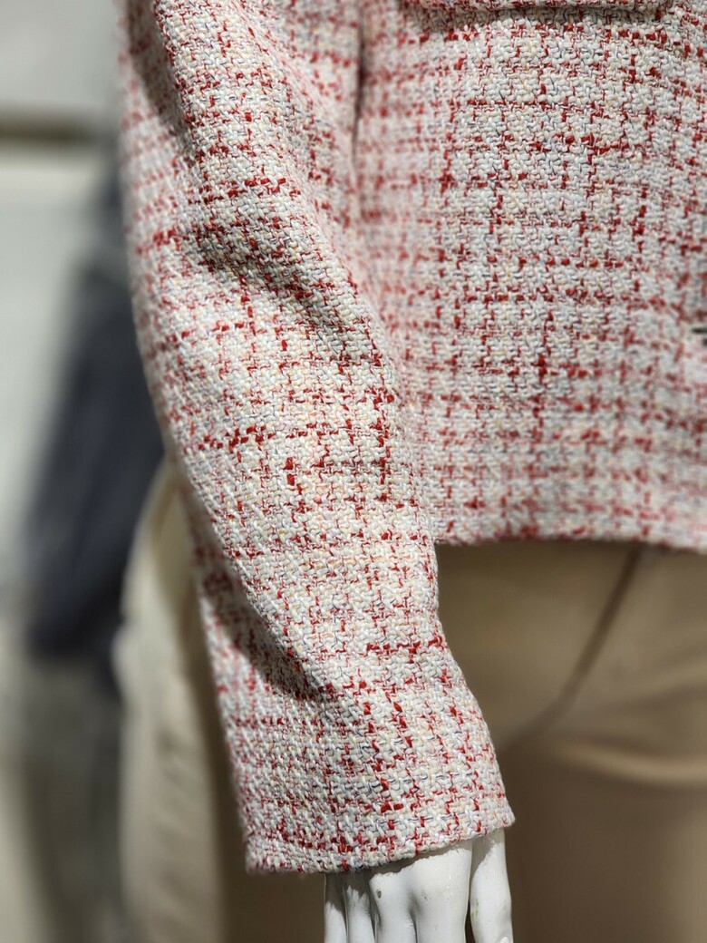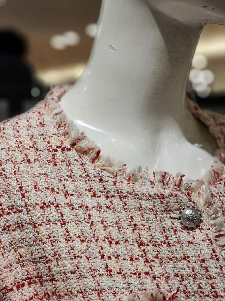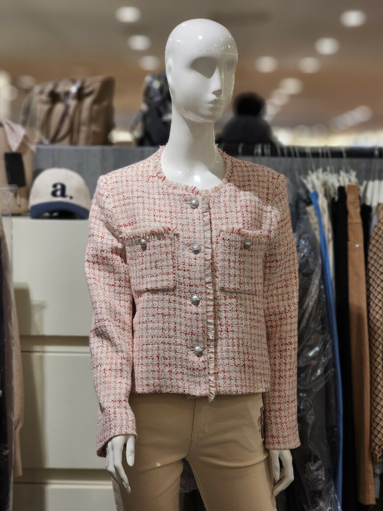 라운드넥라인에 체크 트위드자켓입니다