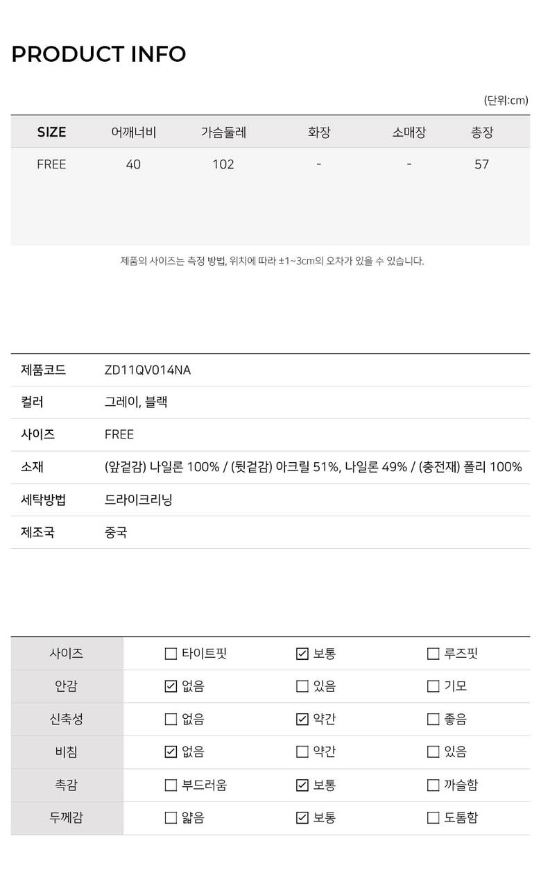 MODEL / 블랙,그레이(FREE) 착용
