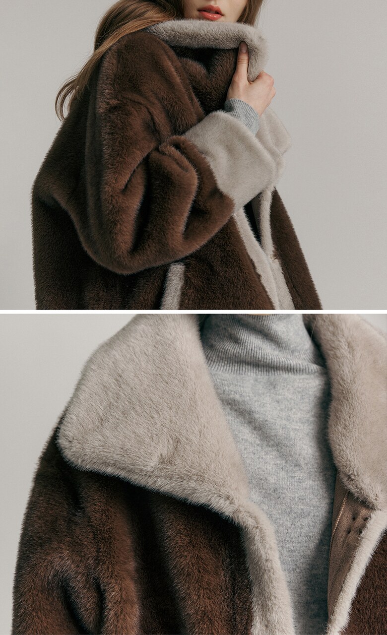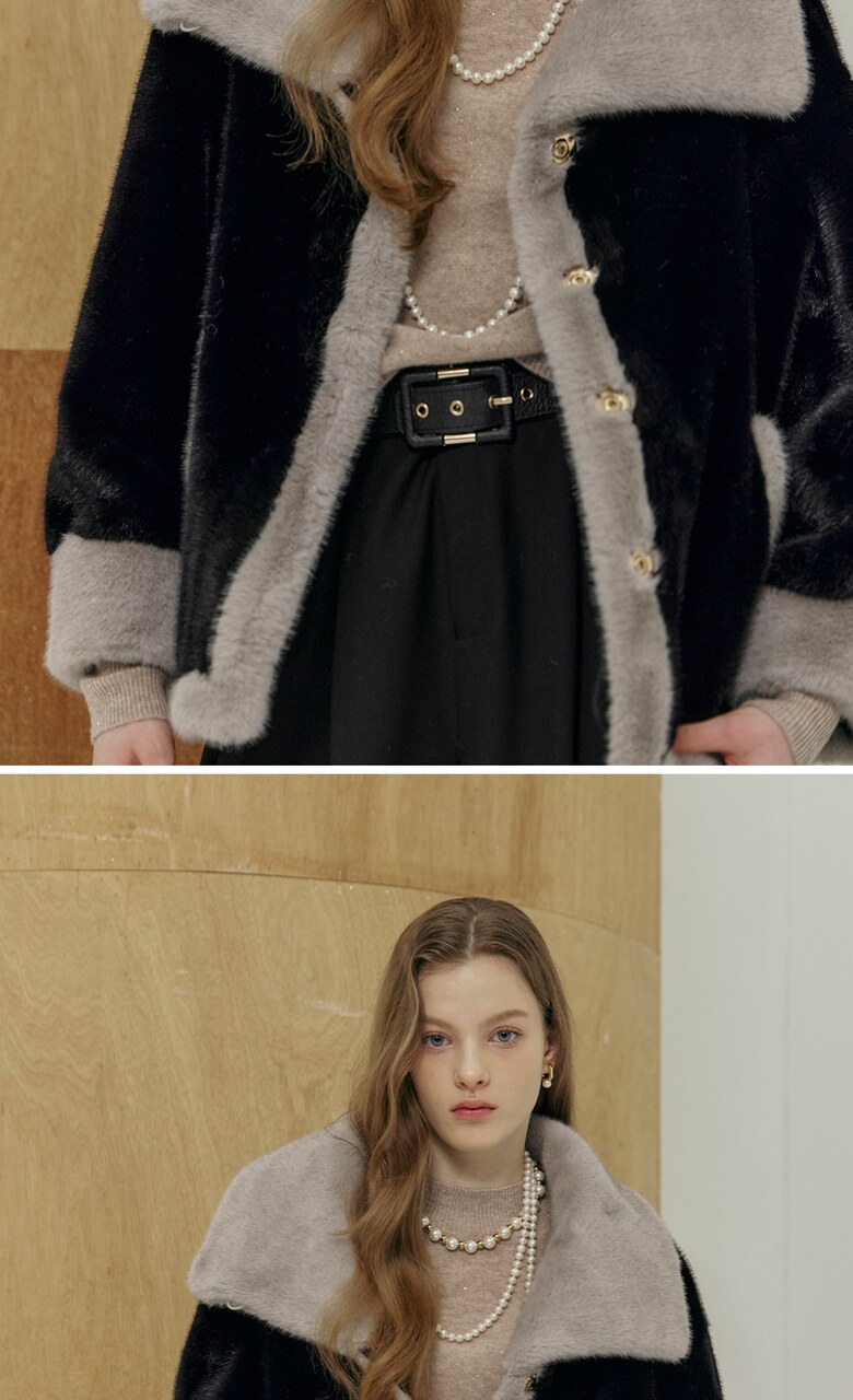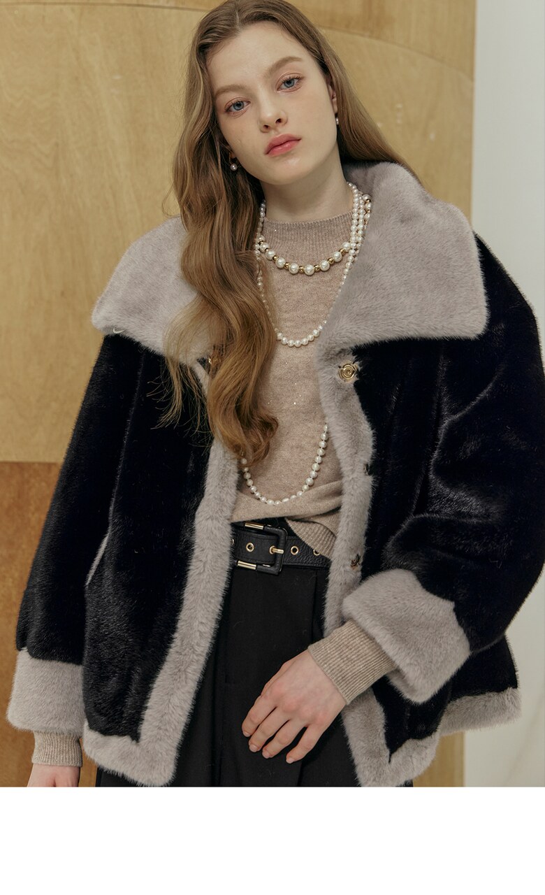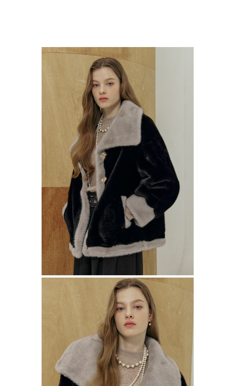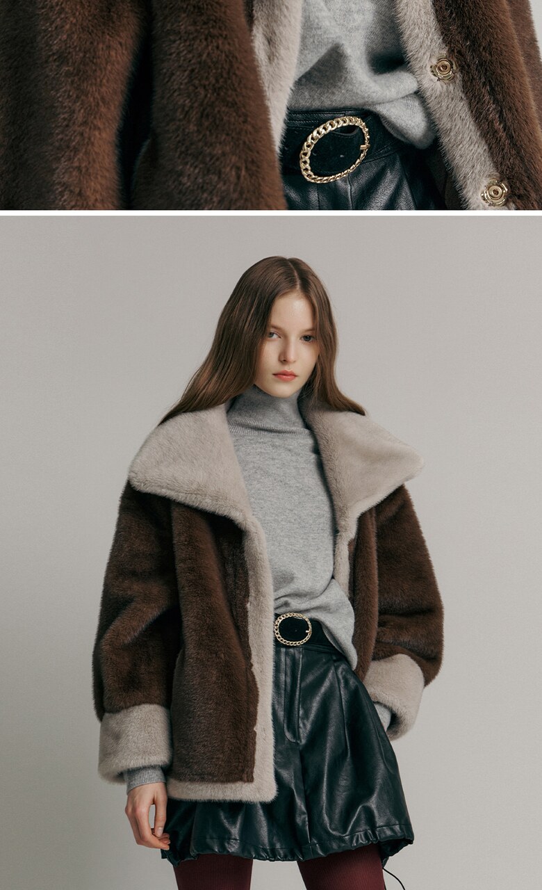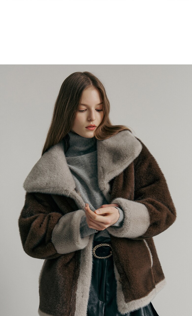 와이드 카라 배색 페이크퍼 무스탕 자켓
