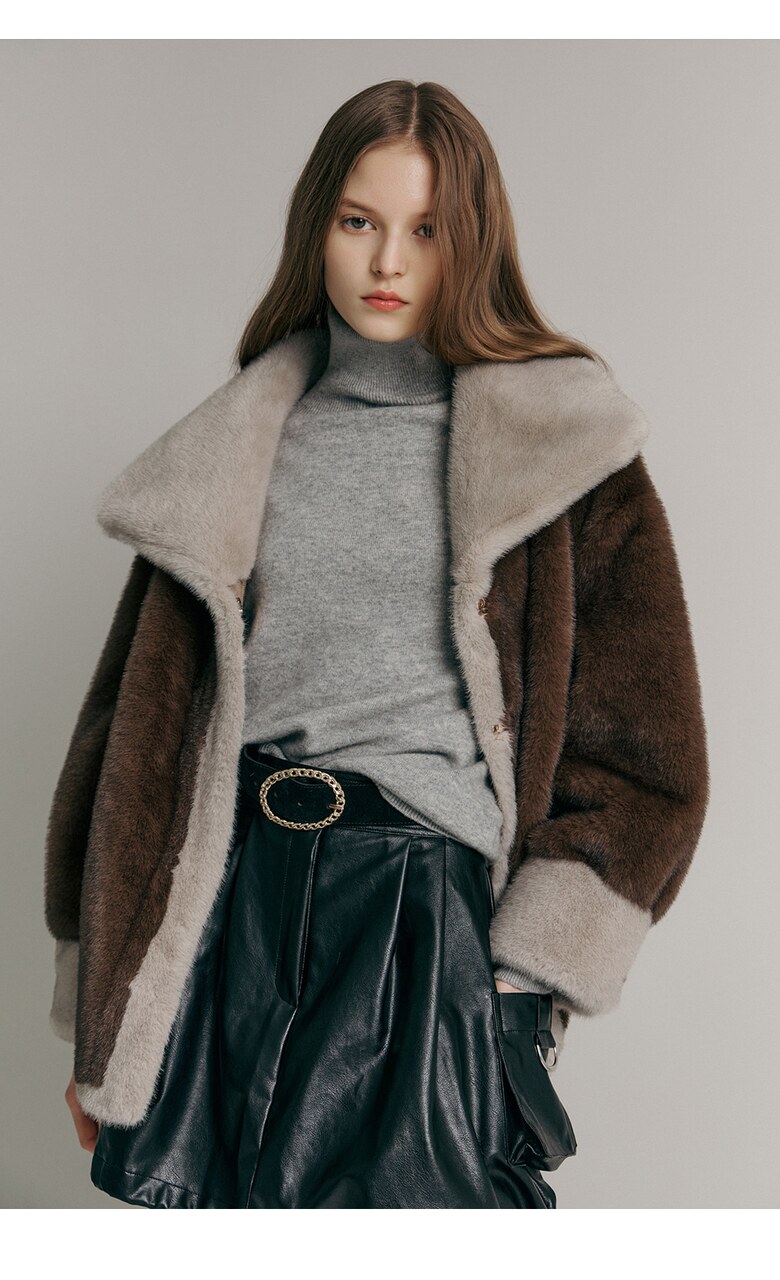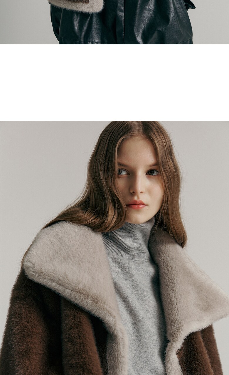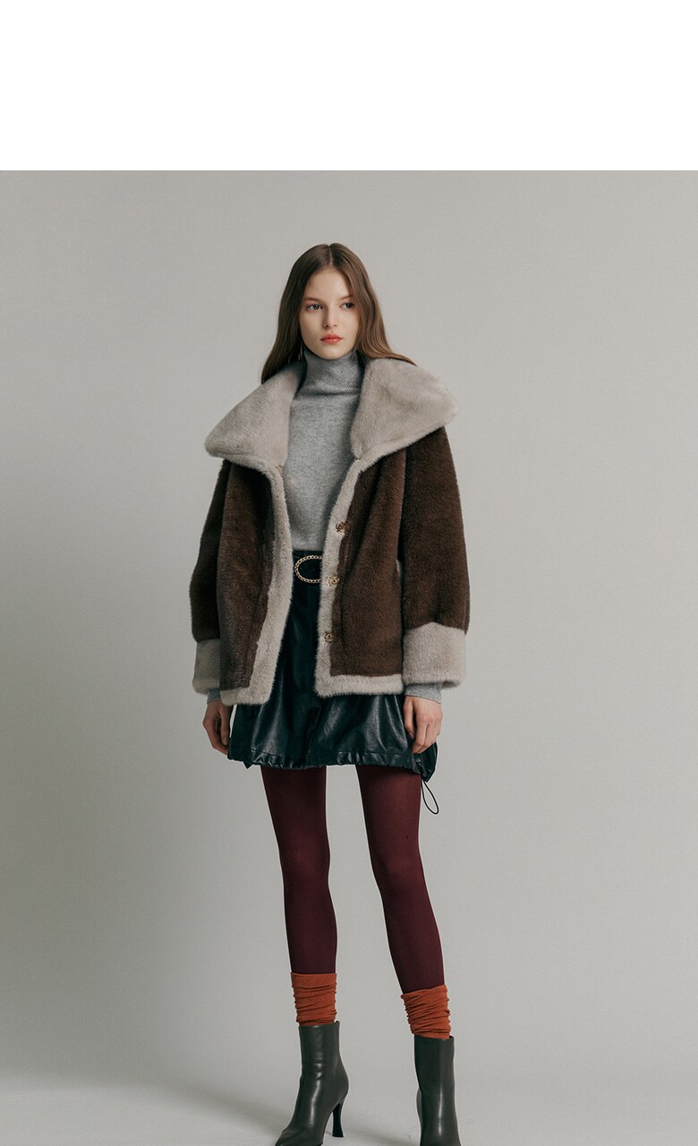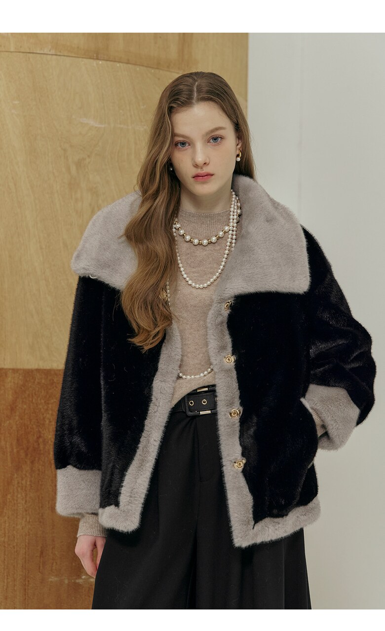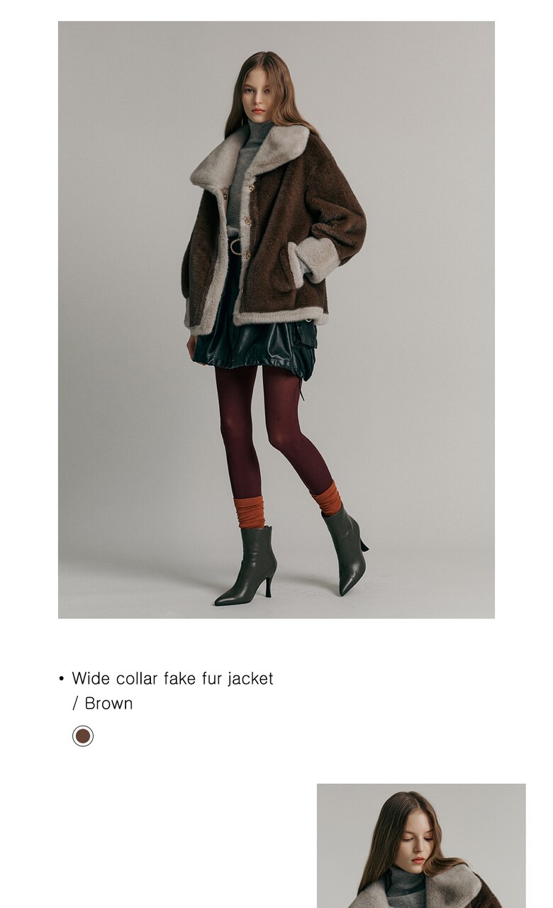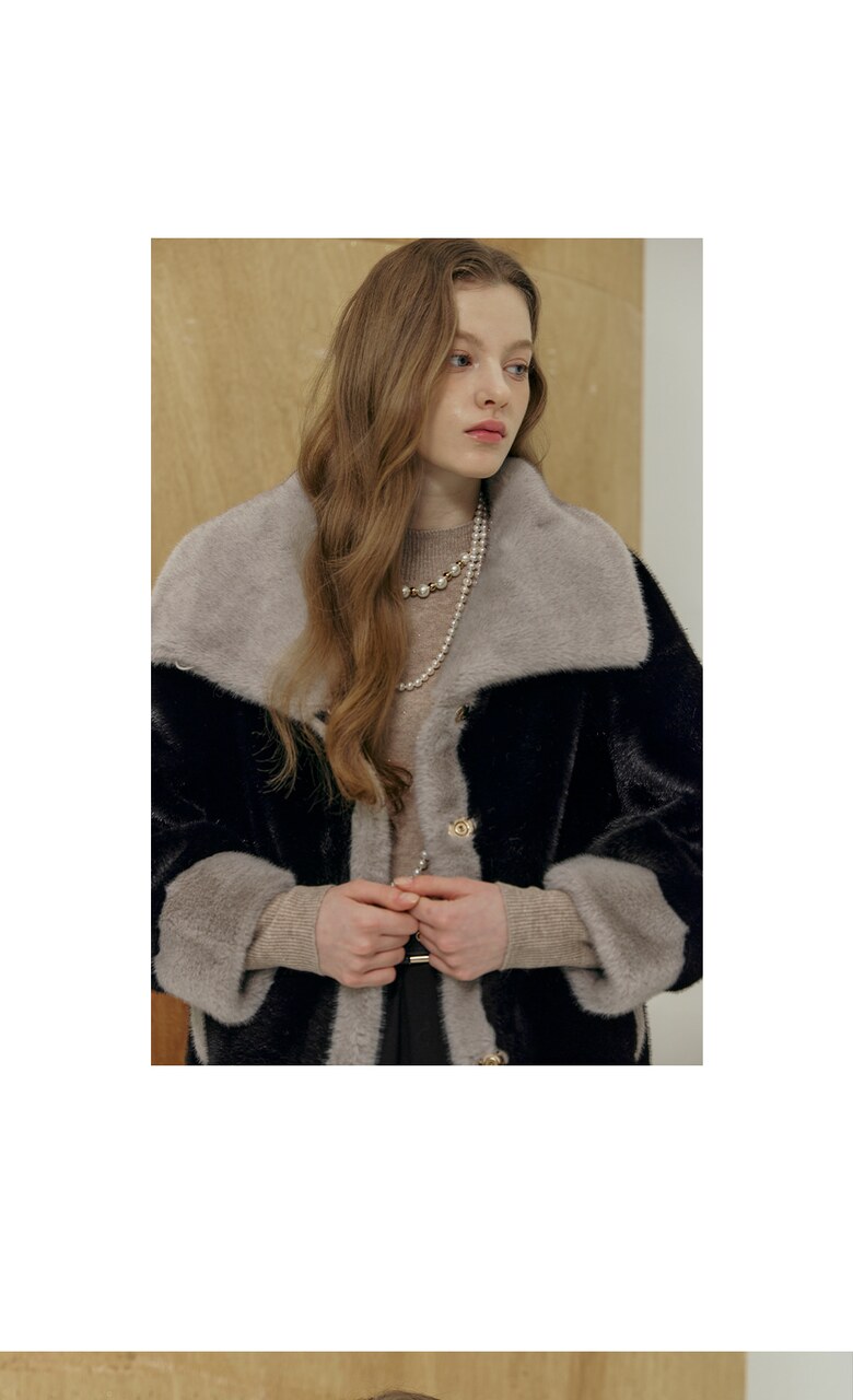 와이드 카라 배색 페이크퍼 무스탕 자켓