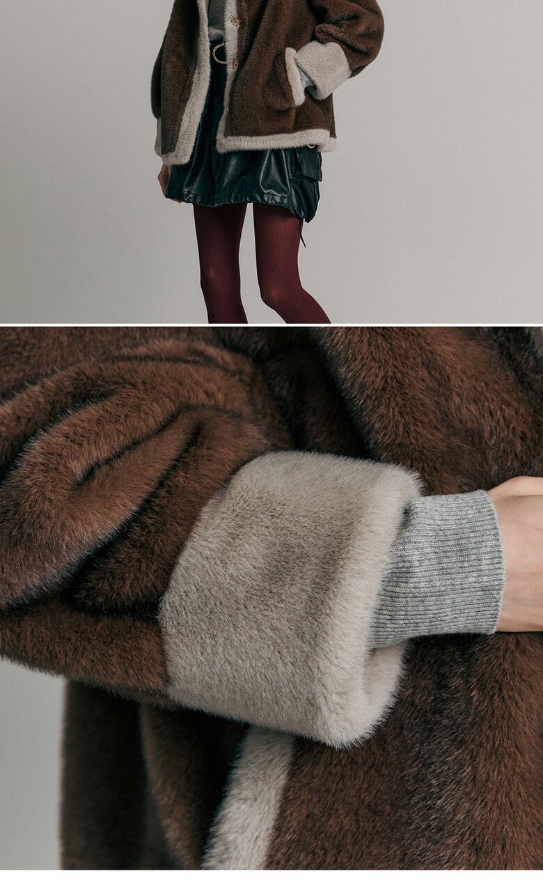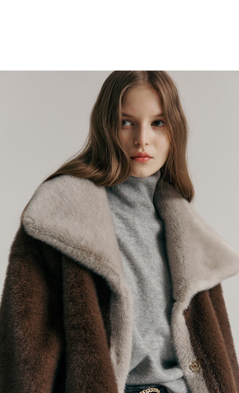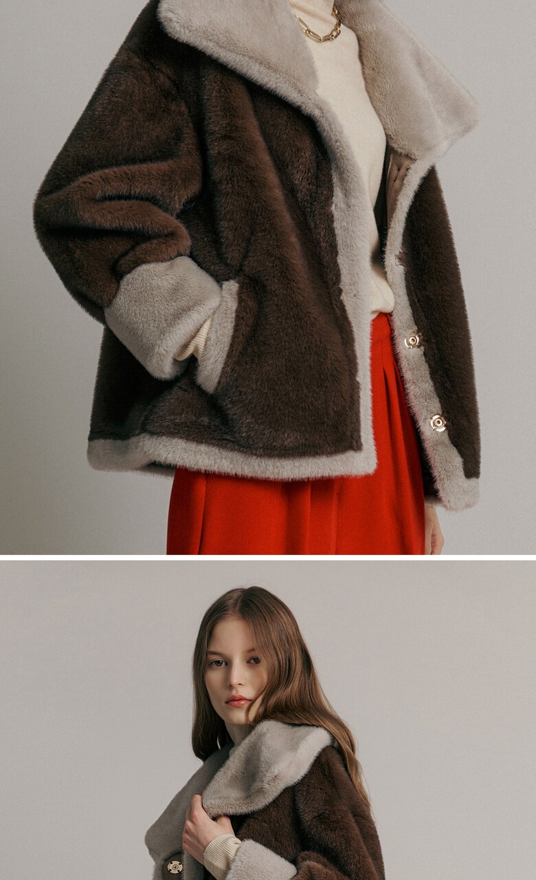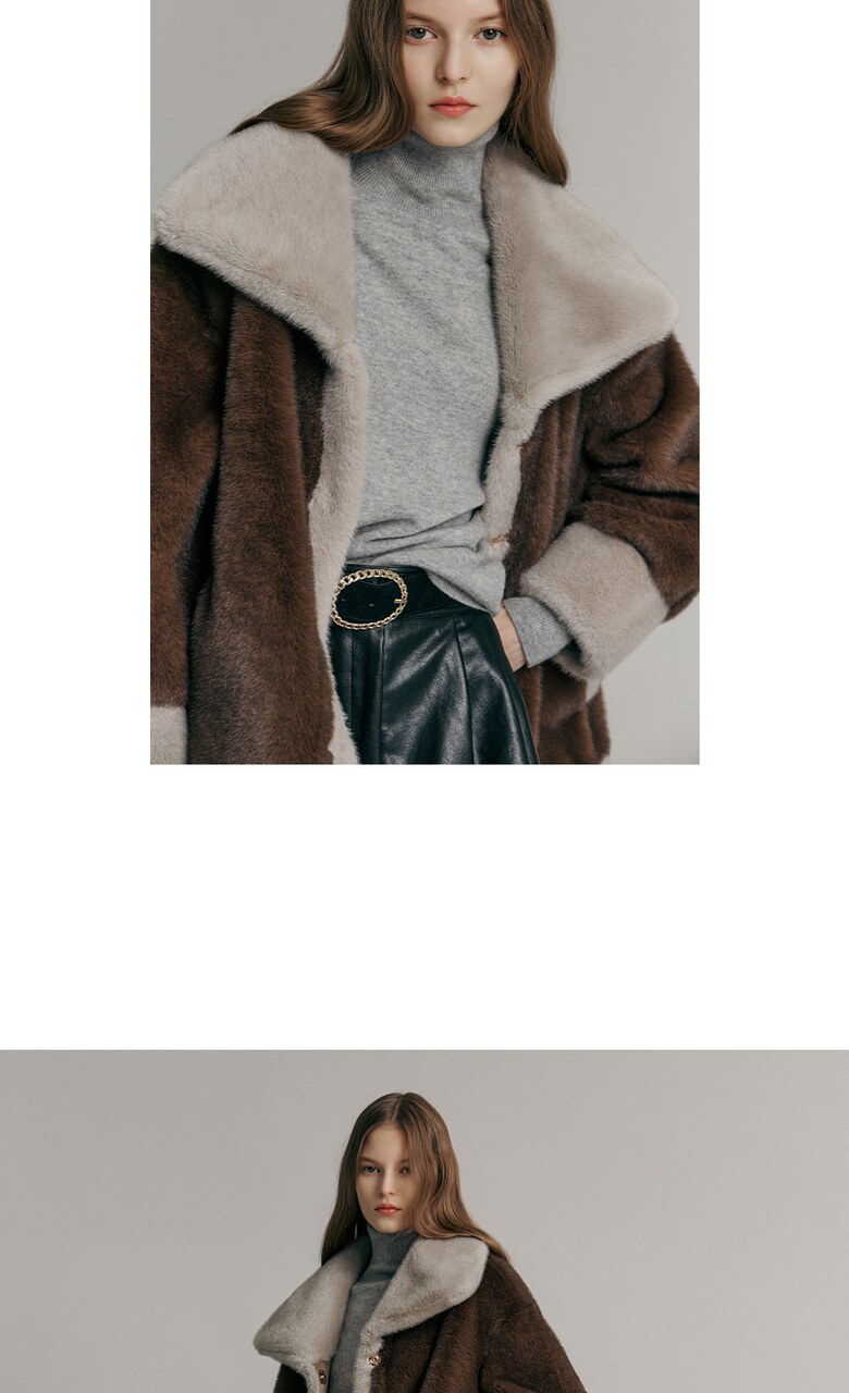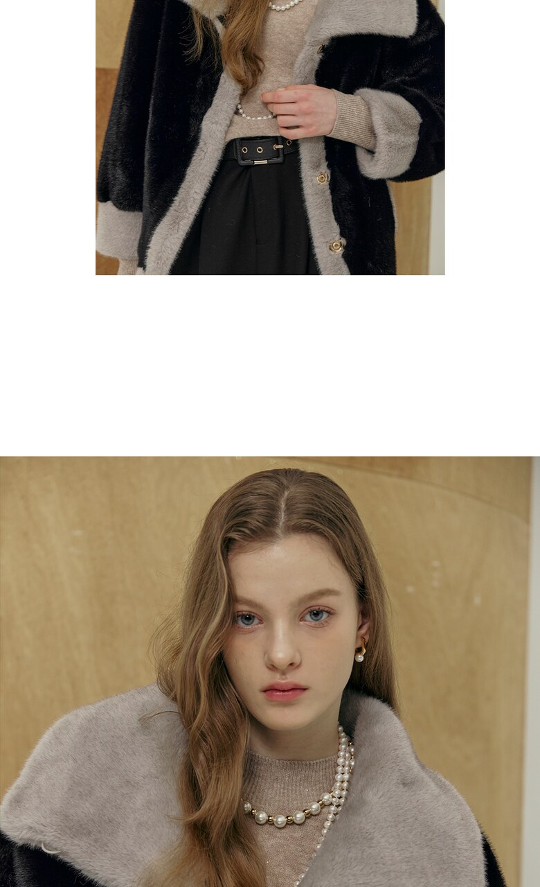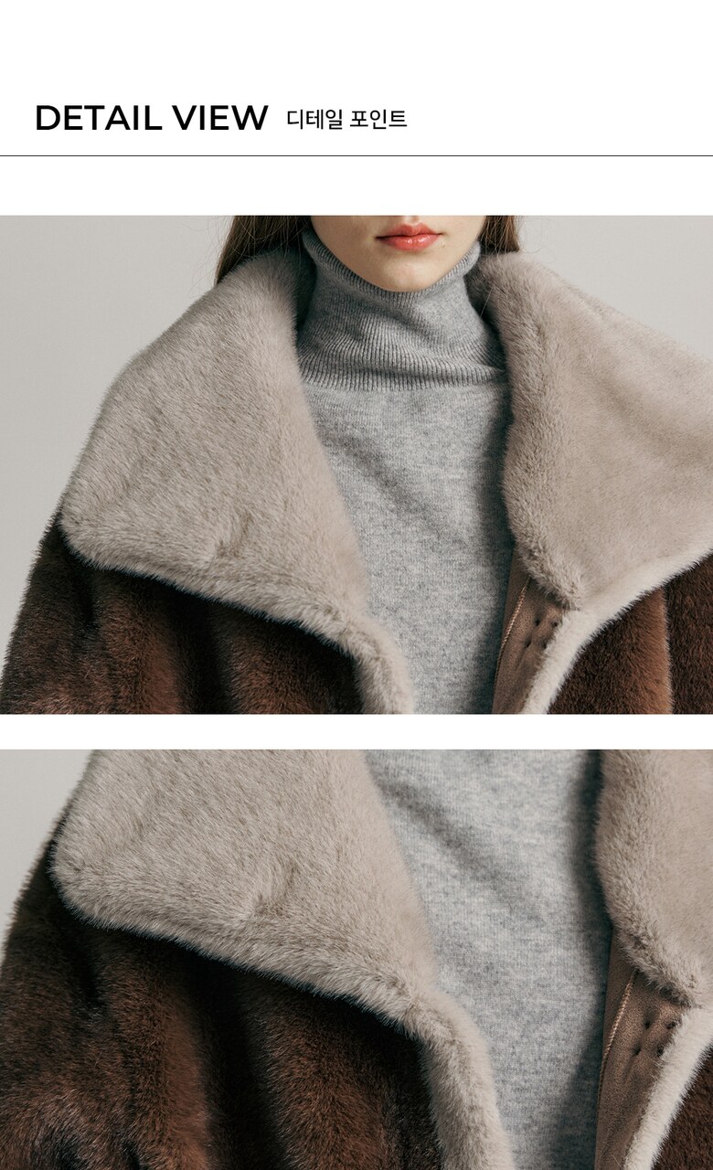 와이드 카라 배색 페이크퍼 무스탕 자켓