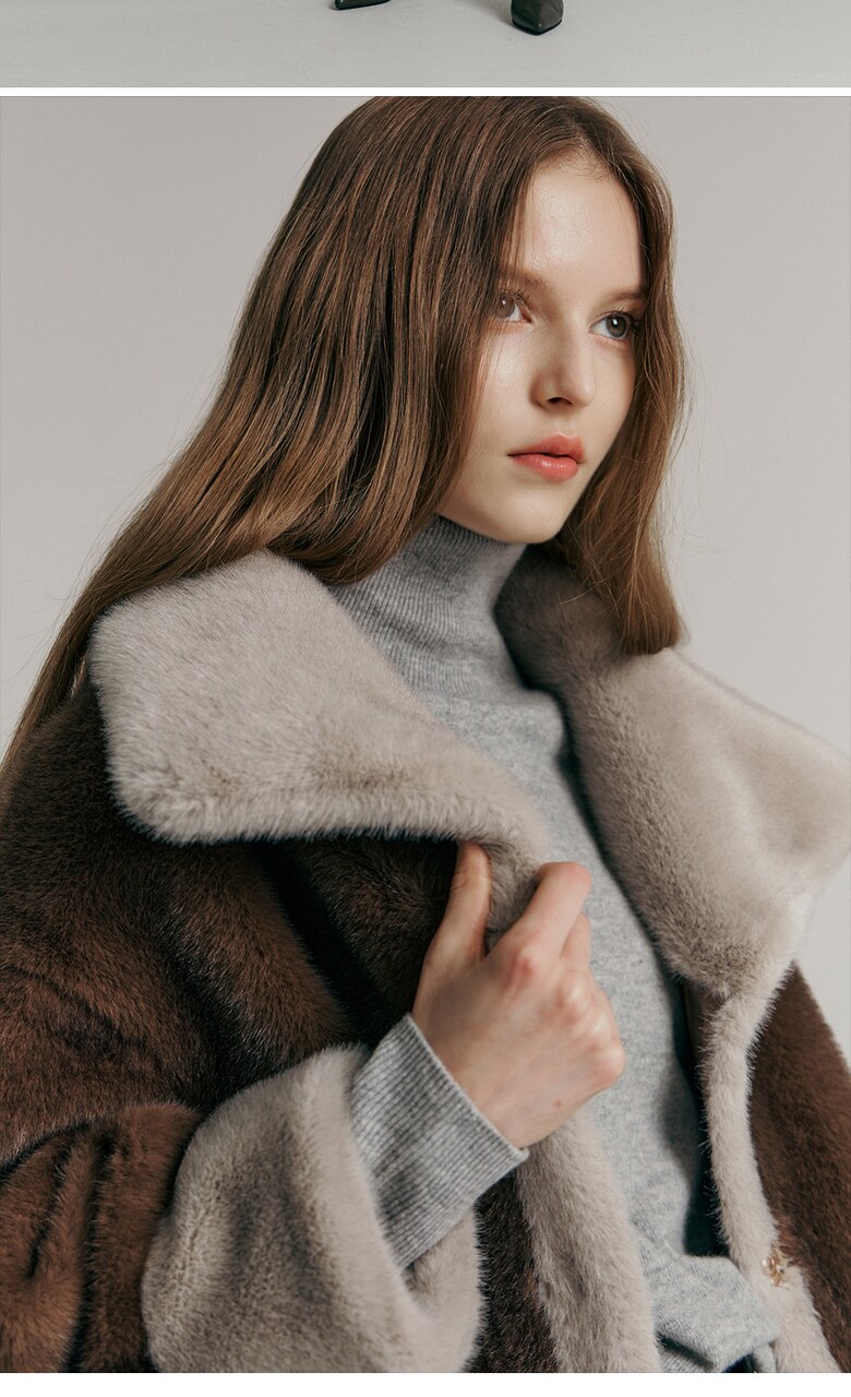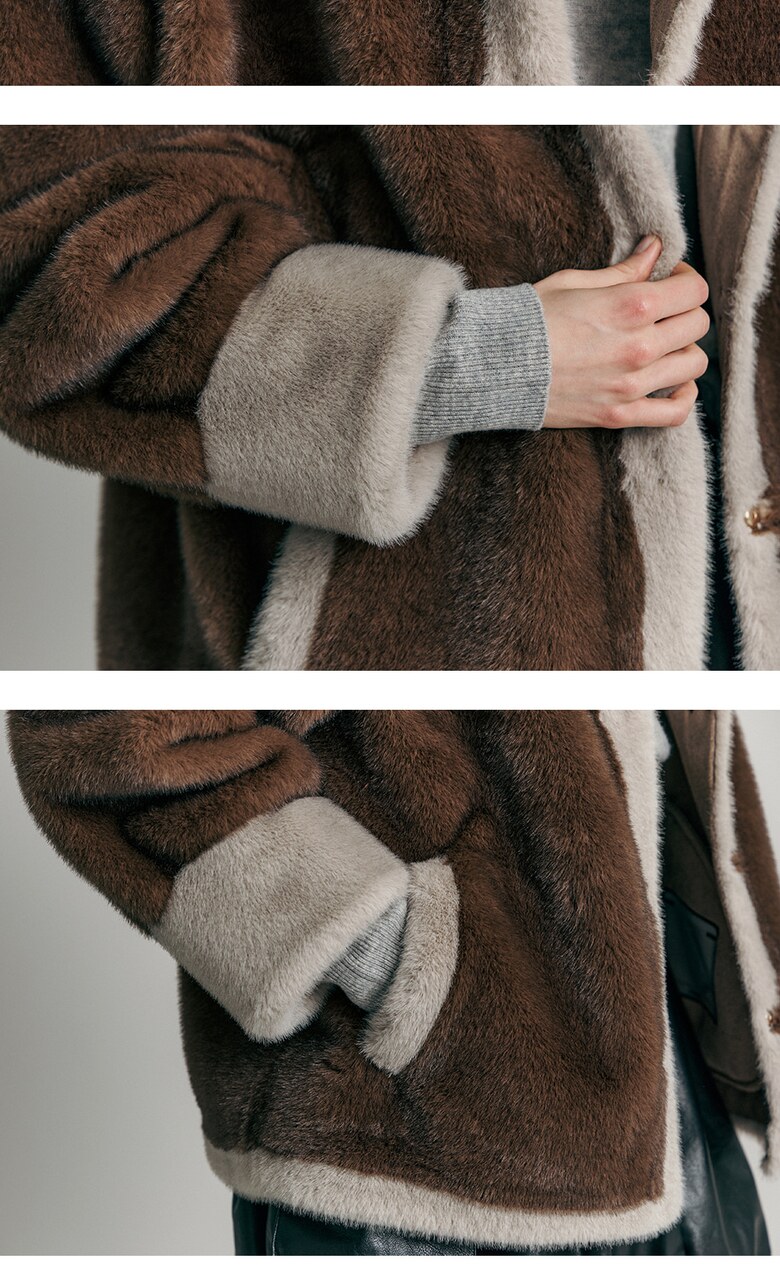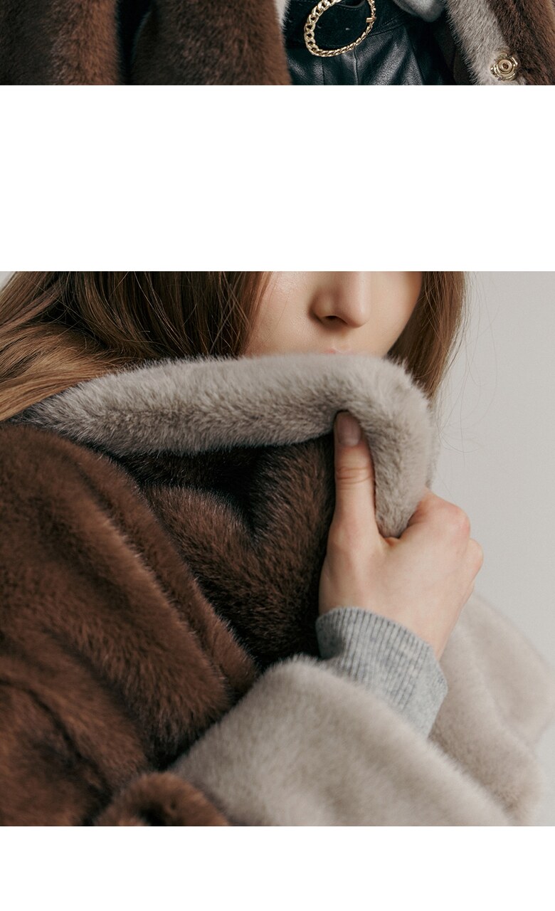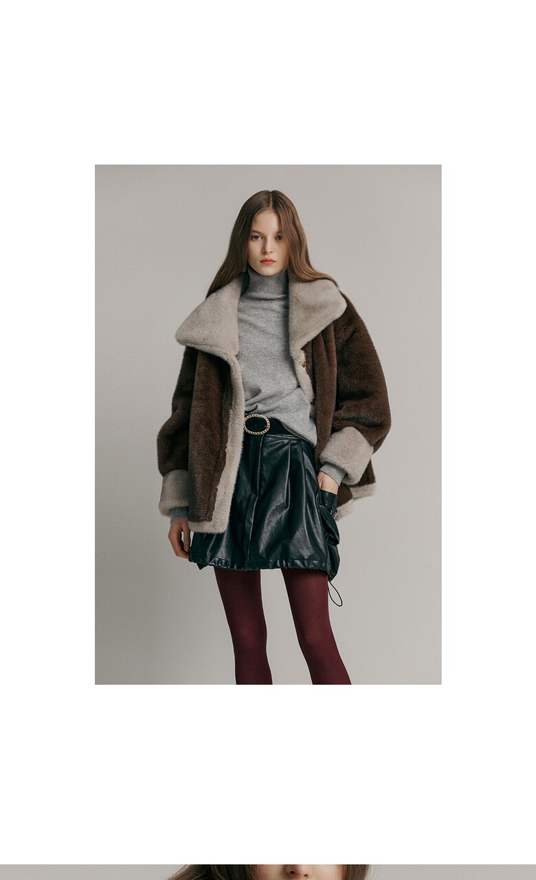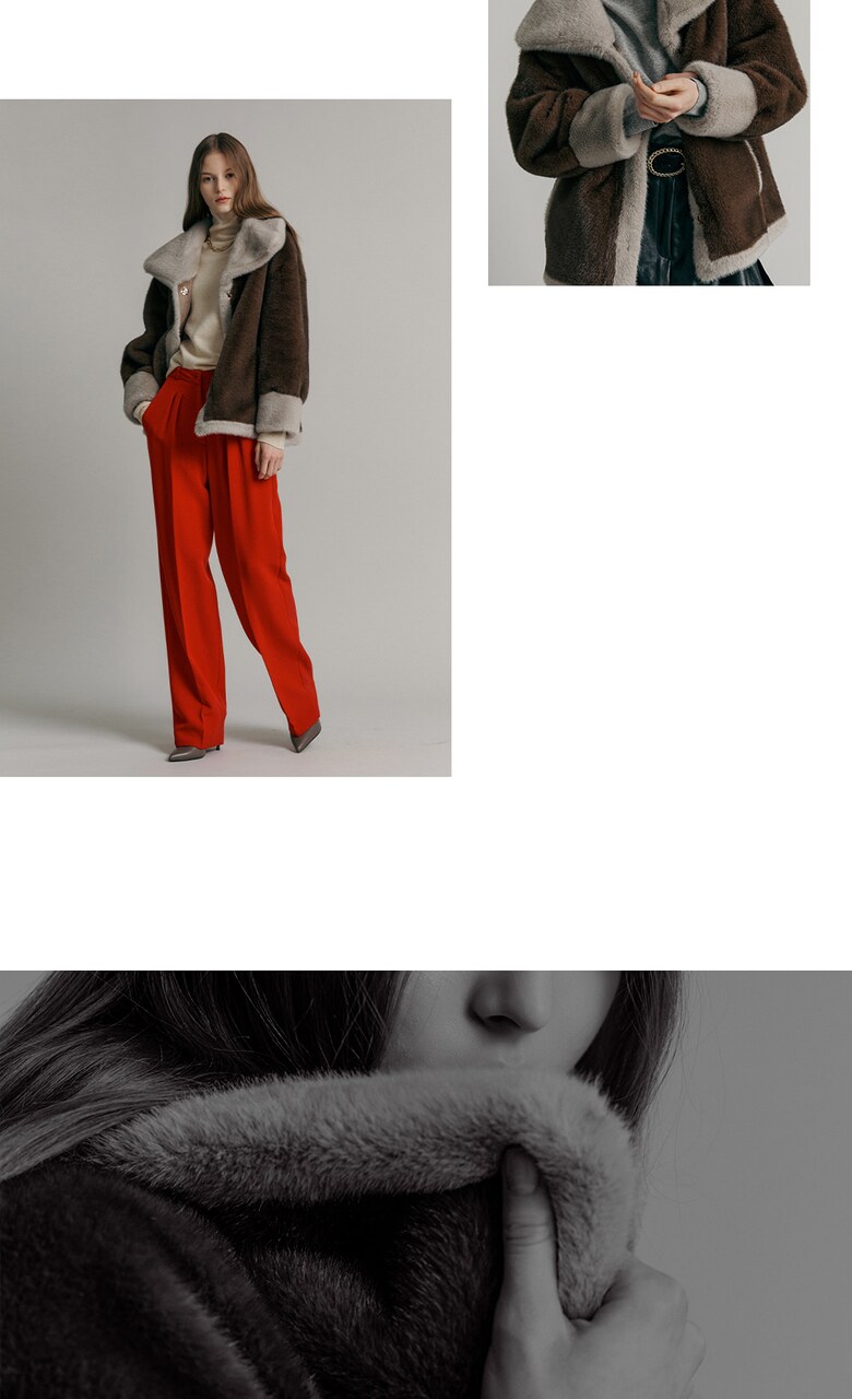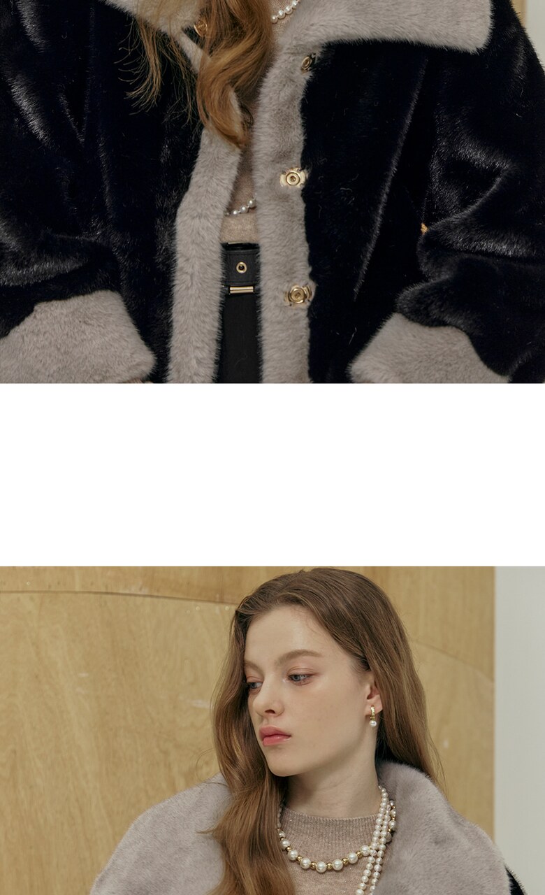 와이드 카라 배색 페이크퍼 무스탕 자켓